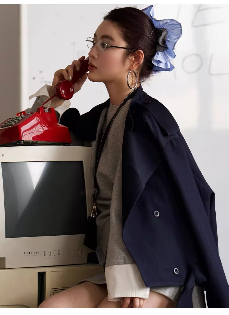 【门店同款】ENJOY春季“盐貌似糖”普洗蓝条纹翻袖外套 160793927