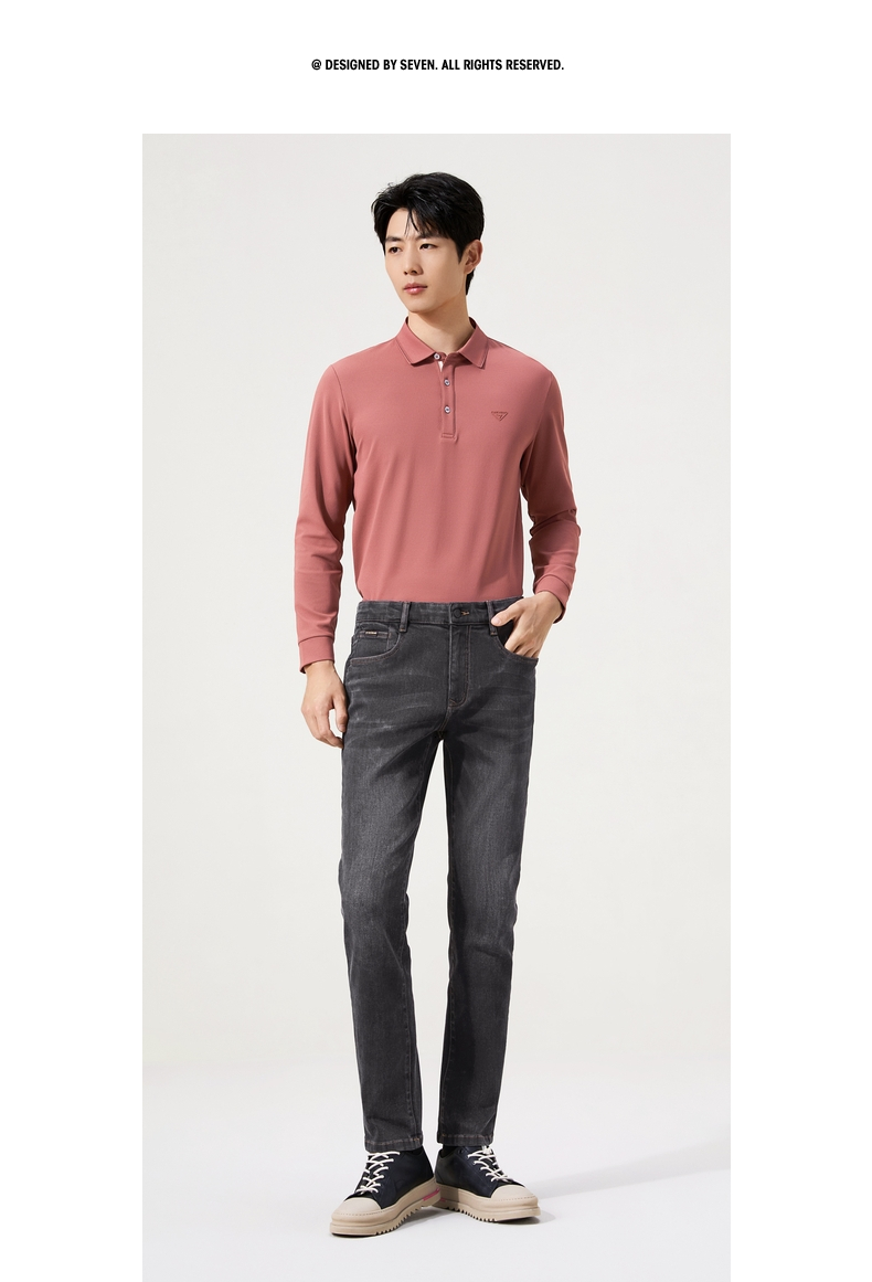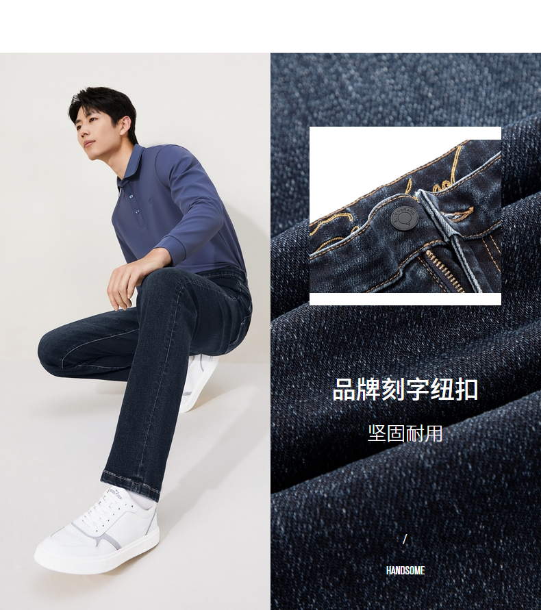【莱赛尔】柒牌牛仔长裤2025秋季新款时尚潮流休闲百搭水洗直筒裤129H71290