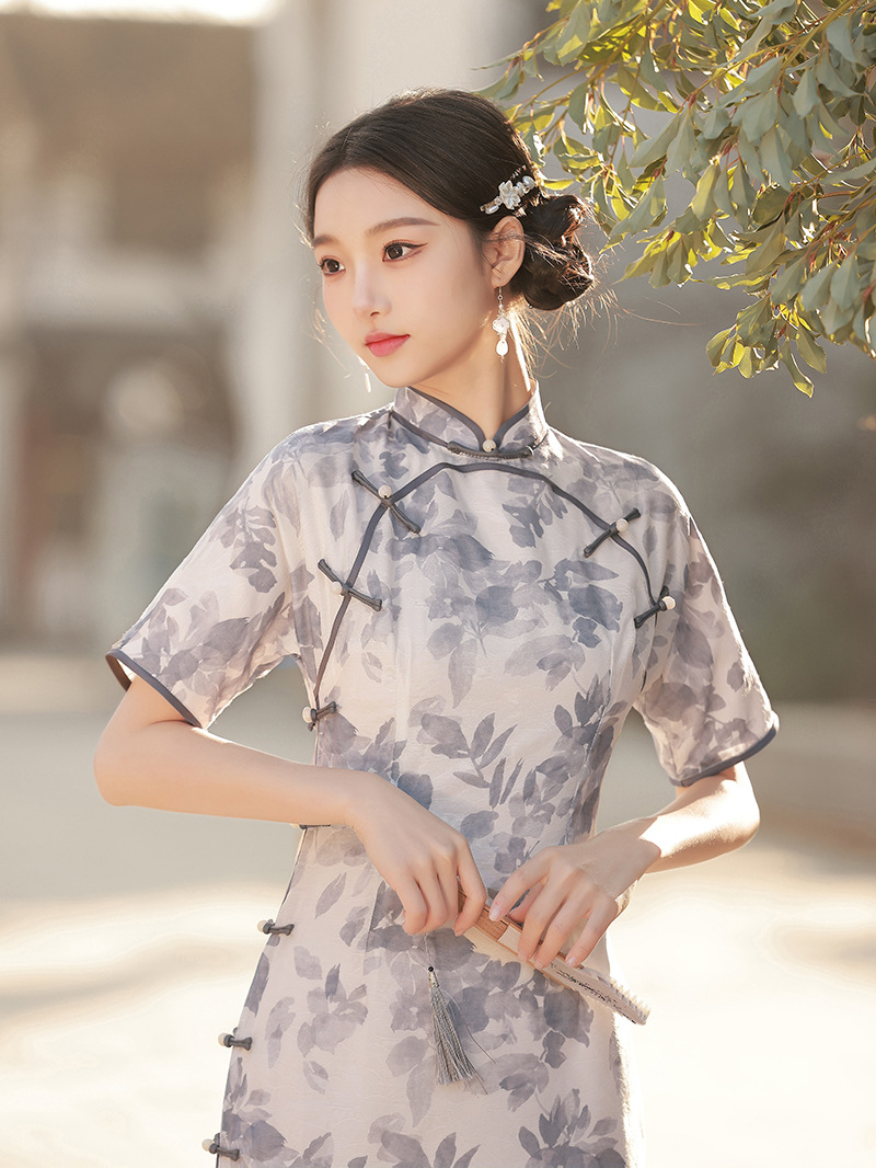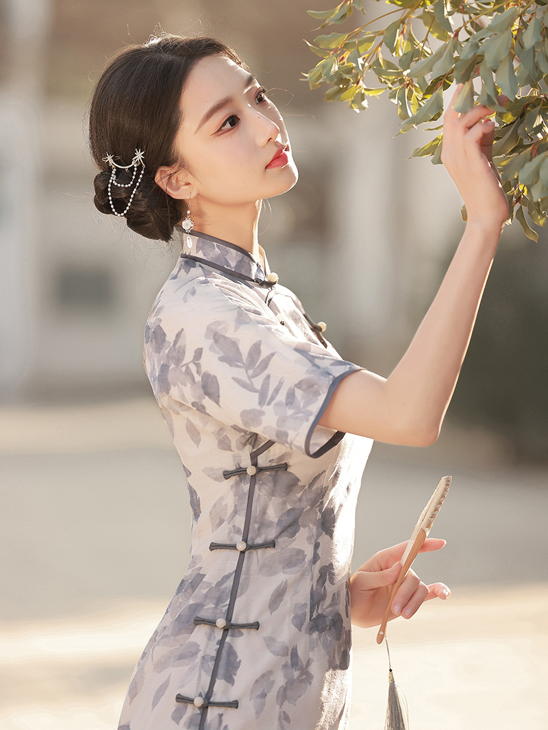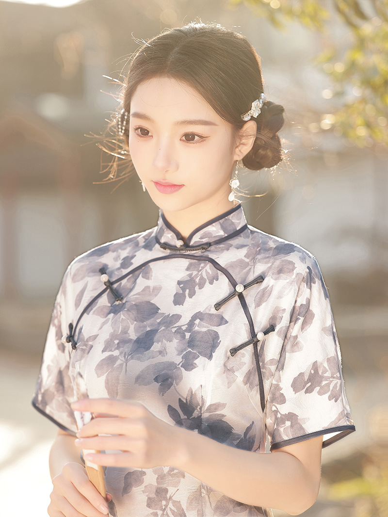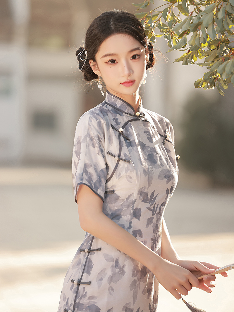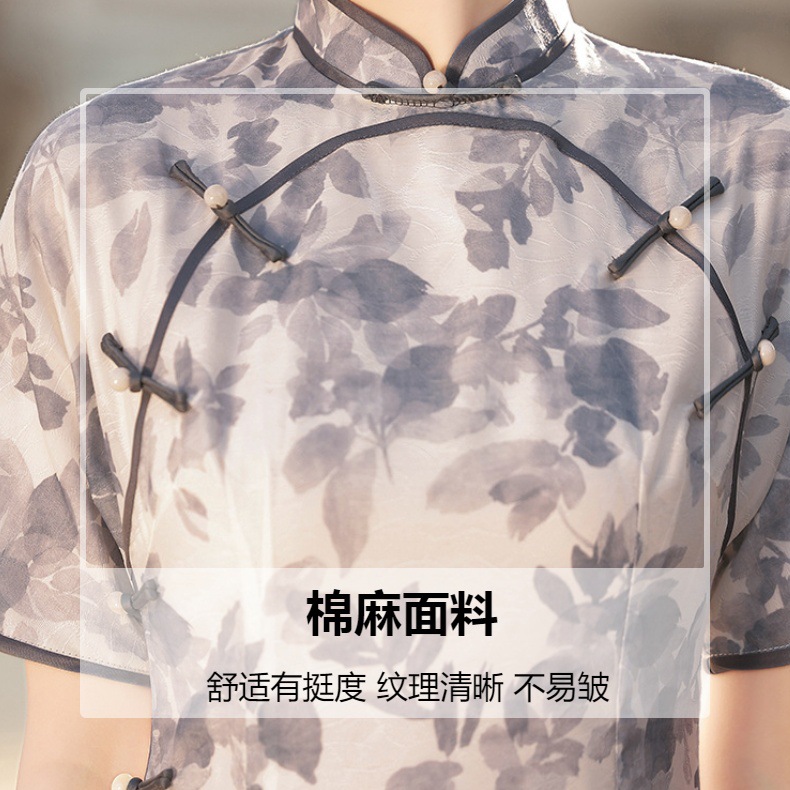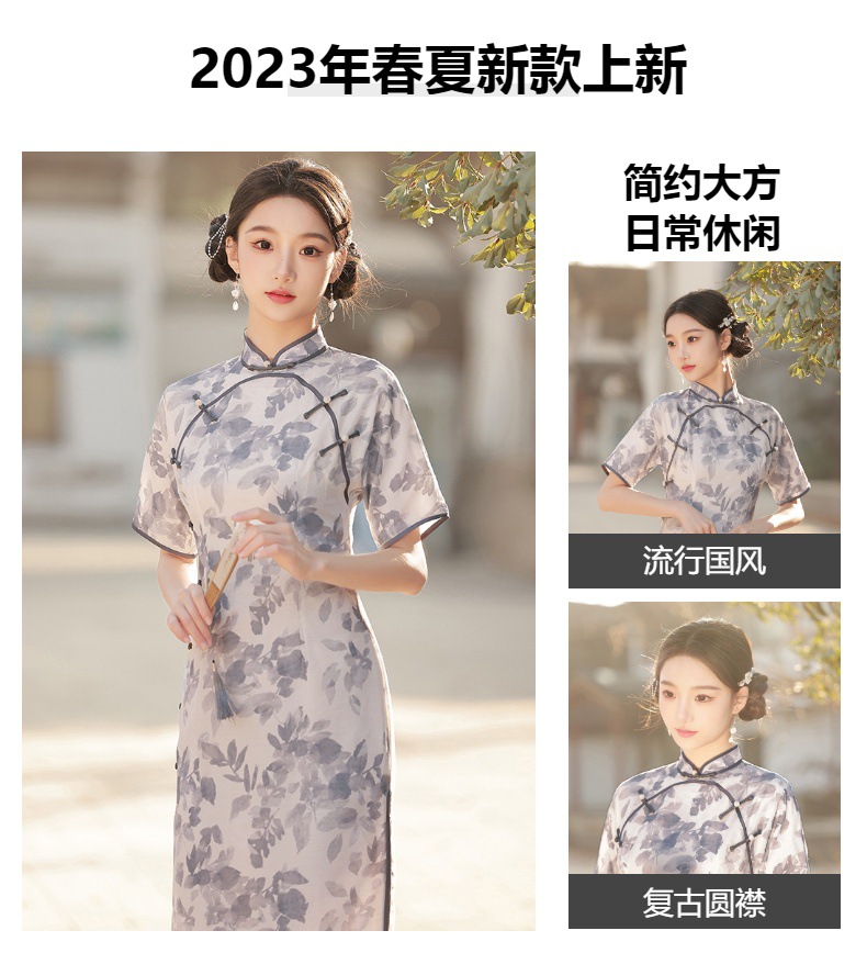 改良少女款圆襟日常,休闲中国风轻薄旗袍XL-23037