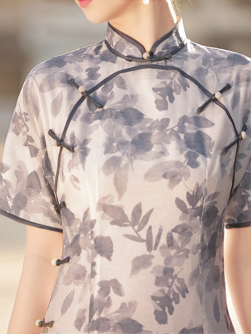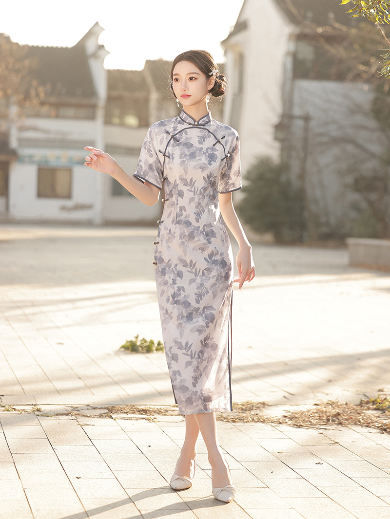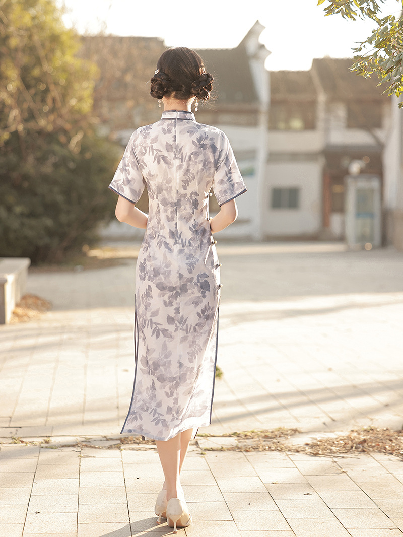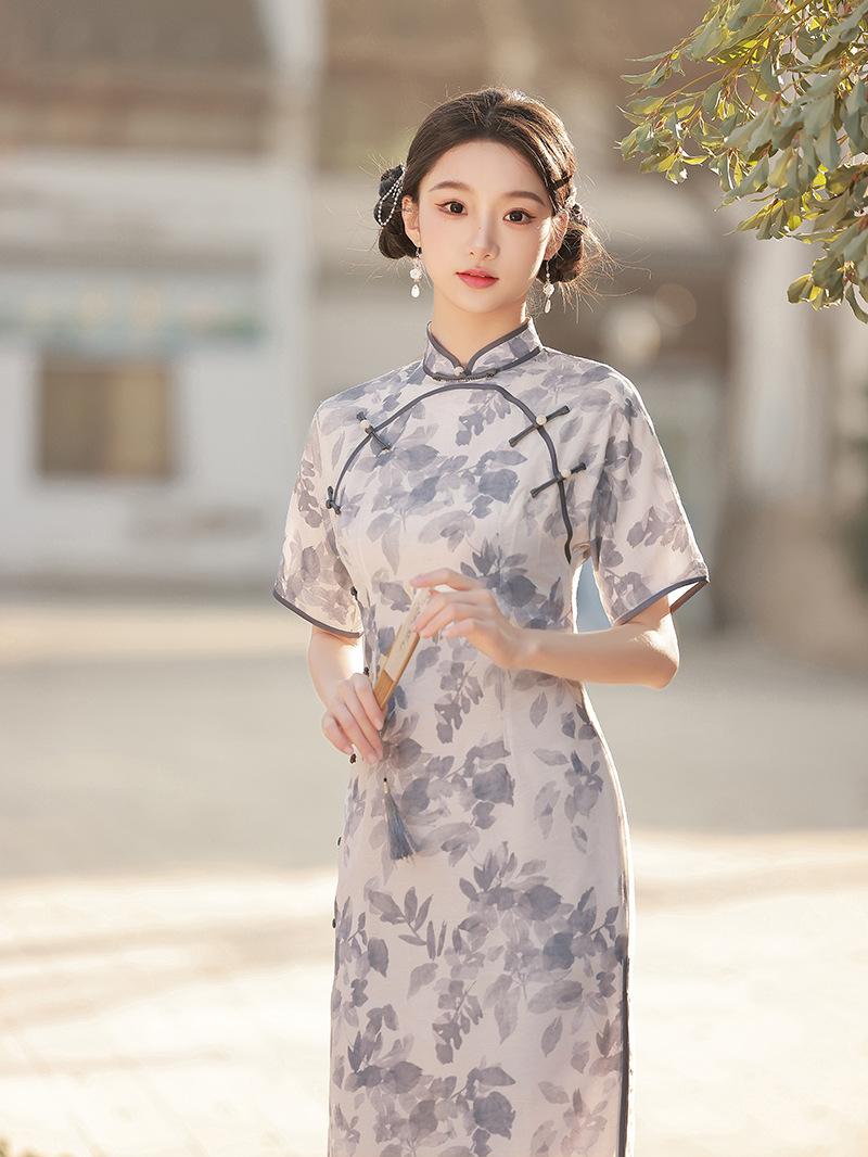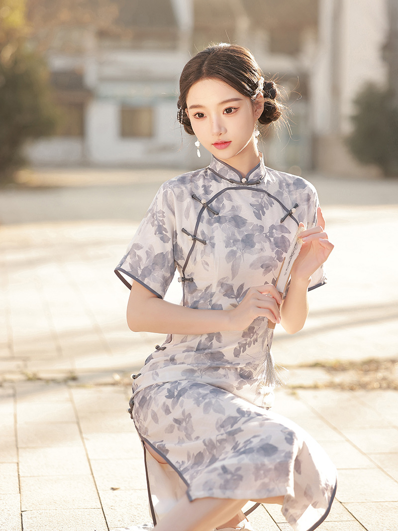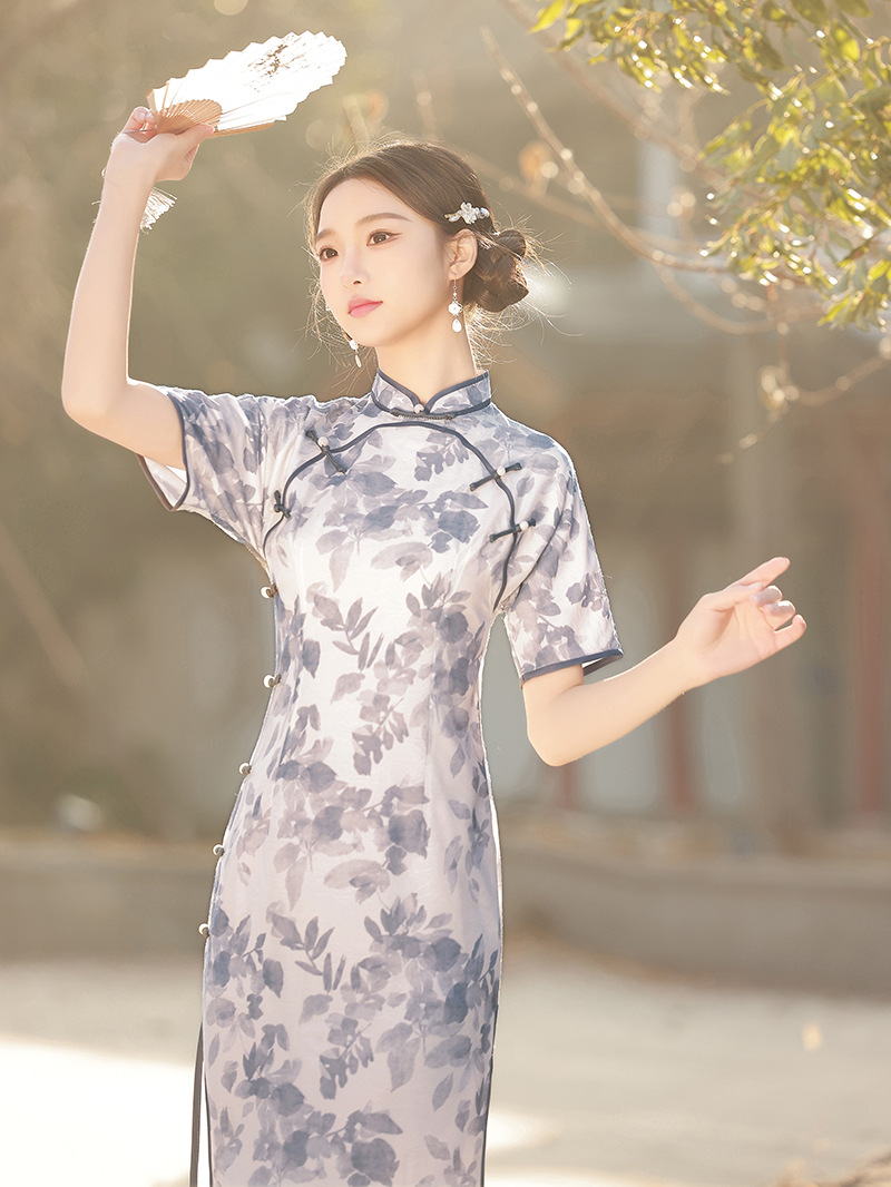 改良少女款圆襟日常,休闲中国风轻薄旗袍XL-23037