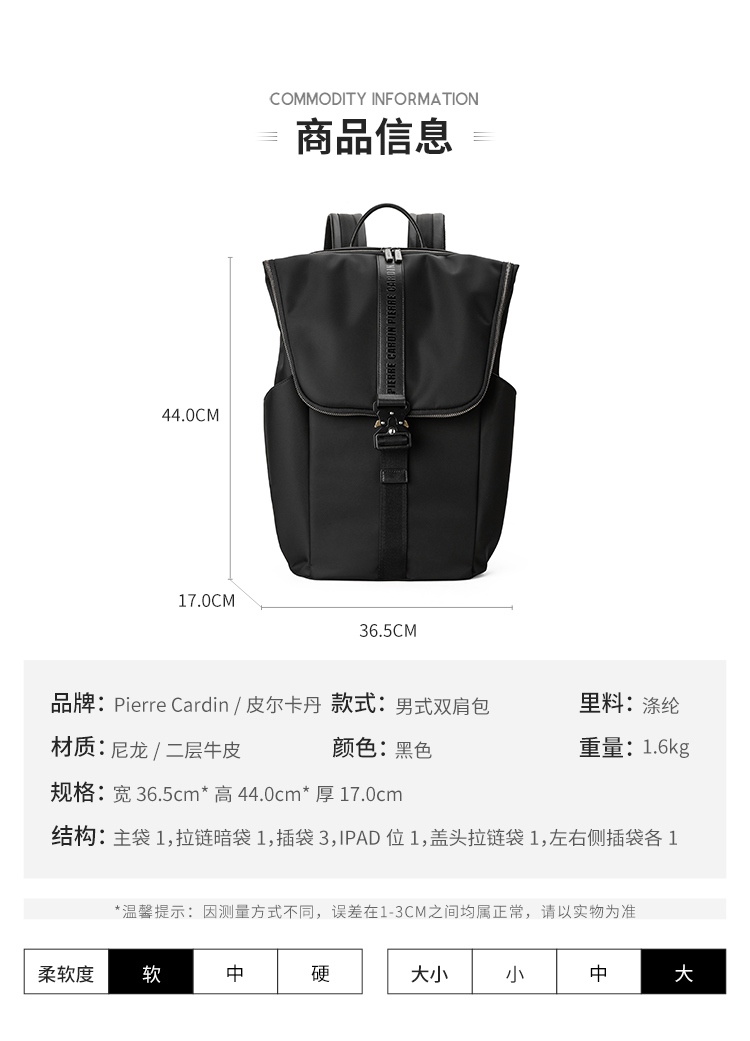 皮尔卡丹官方正品大容量旅游出行办公男女同款双肩包