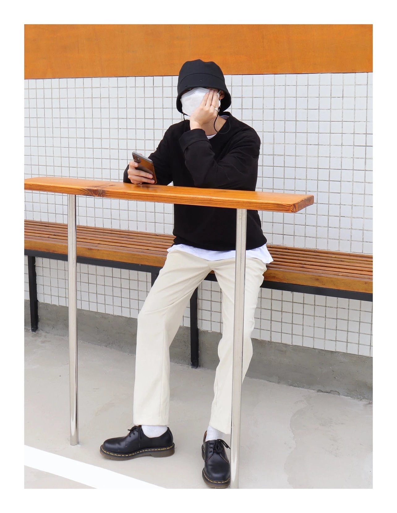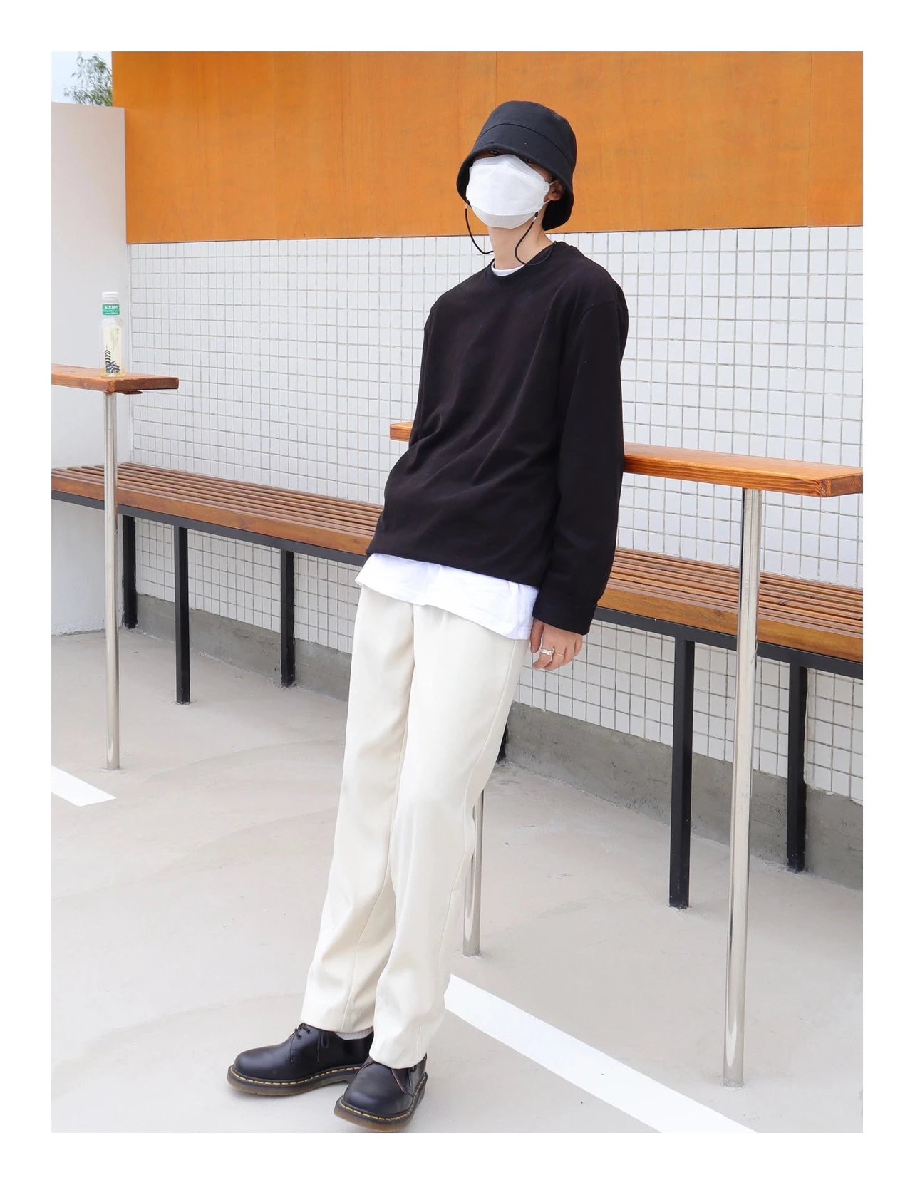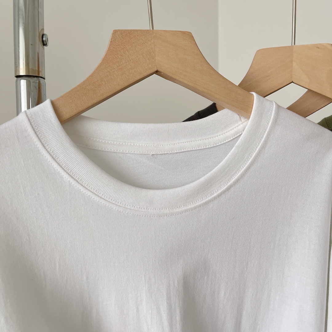 日系复古无缝桶织工艺,双层高密螺纹不易变型,不易变形,肩部琏式六线锁边/内侧通肩压条