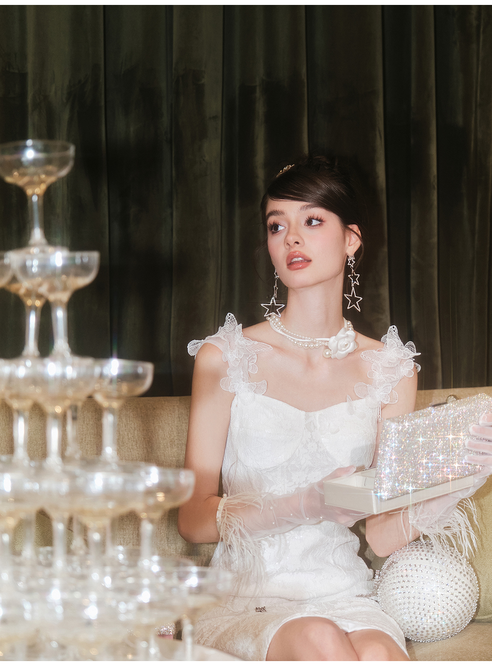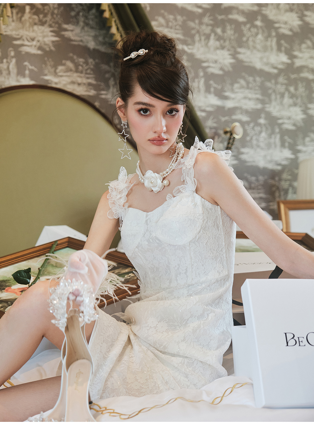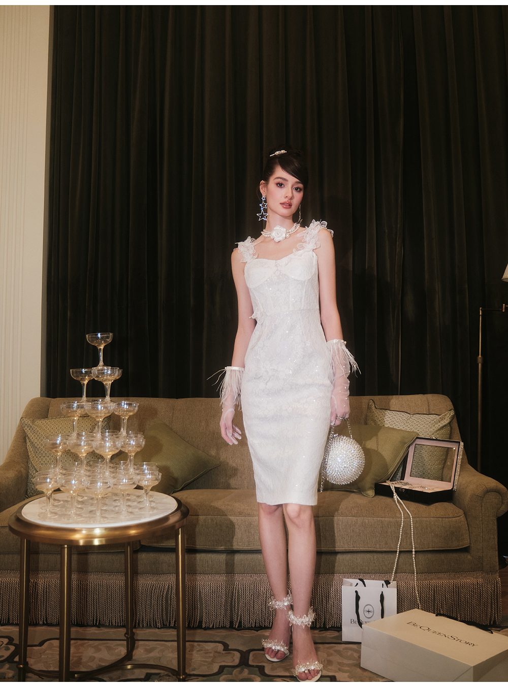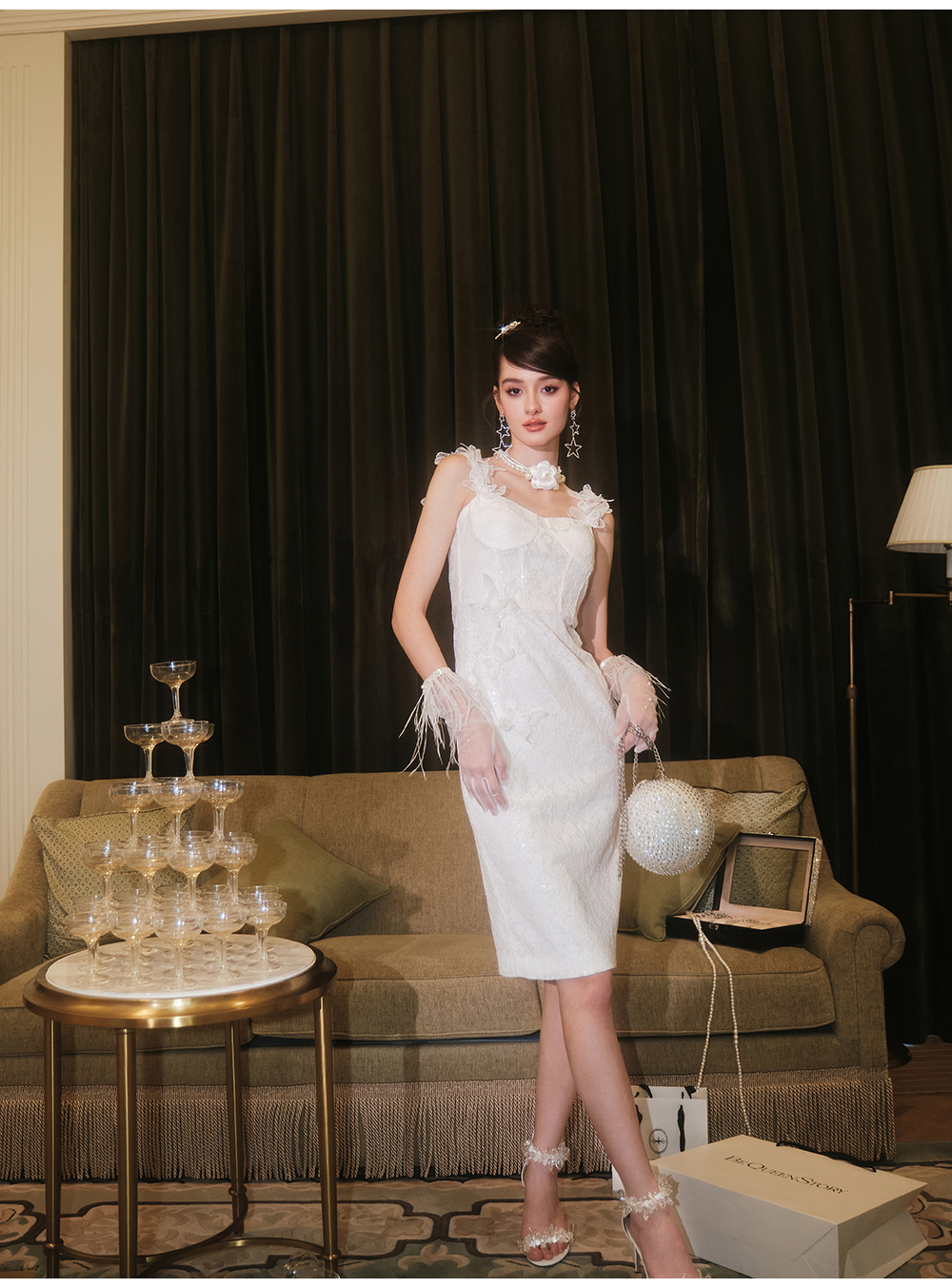 【孤品样衣,不退不换】【花的嫁纱】轻奢气质白色礼服连衣裙新款