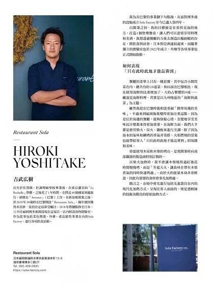 「在暗中會先進行包括先進器具在內的現代化加熱方式,呈現在客人面前的,則是憑廚師的技術決勝負的原始加熱方式。」──Restaurant Sola吉武広樹