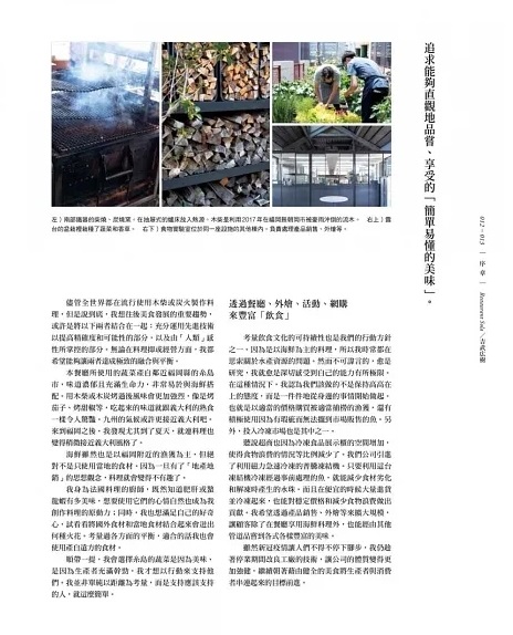 不受限於法國、義大利等等既定的料理派系束縛,或是既有高級魚種的成見所左右,書中的主廚們更加重視日本隨著四季更迭的食材季節感,藉由靈活的發想去發揮每道料理的個性,如此一來究竟會端出什麼樣的佳餚呢?