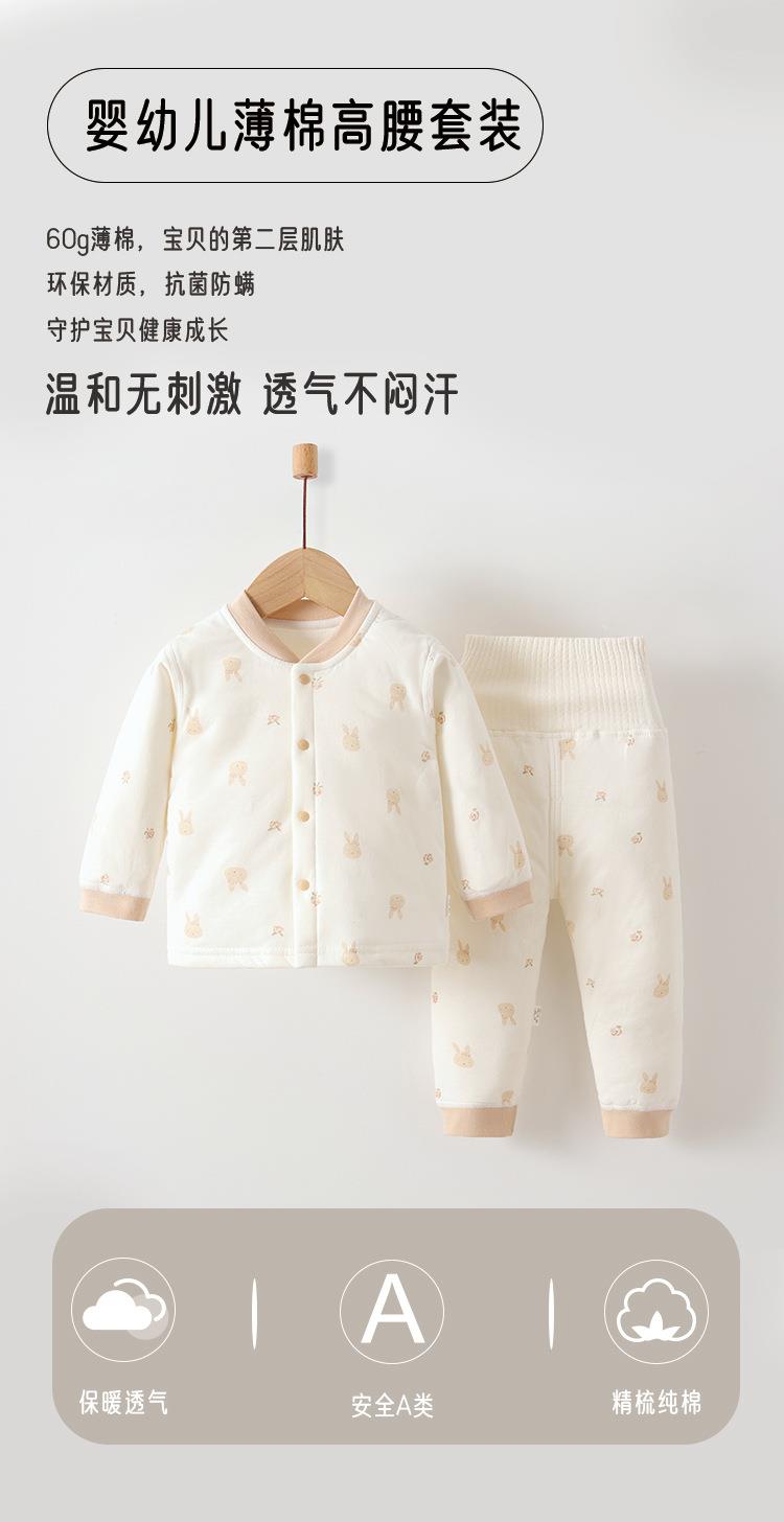 婴儿保暖衣服秋冬装夹棉高腰护肚新生儿男女宝宝纯棉无骨分体套装