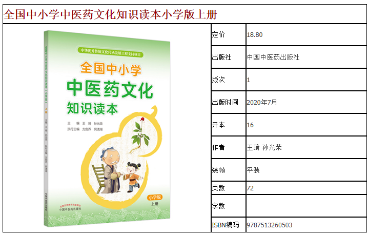 全国中小学中医药文化知识读本小学版上册 中华优秀传统文化传承发展工程支持项目王琦孙光荣中国中医药出版社9787513260503