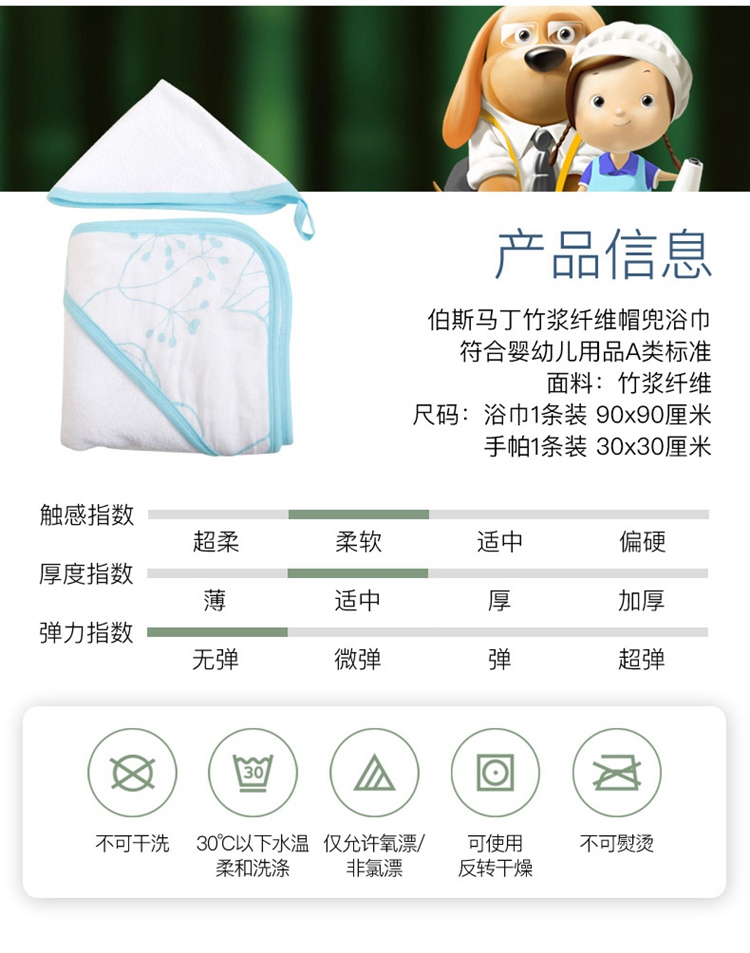 伯斯马丁【A类标准】竹纤维浴巾套装 (浴巾一条90*90cm 手帕一条30*30cm)