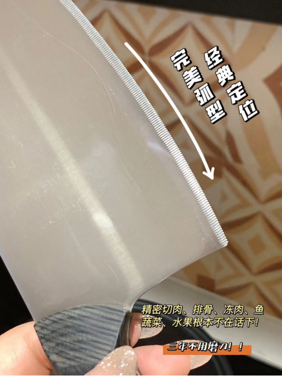 ✅ 轻松切冻肉 切冻肉是永切王微芽刀的一大卖点 常规刀具是不能切冻肉的 这款刀刃有一排锋利的微芽,切冻肉so easy❗️