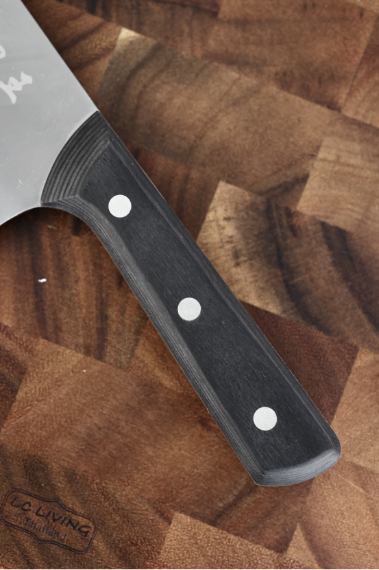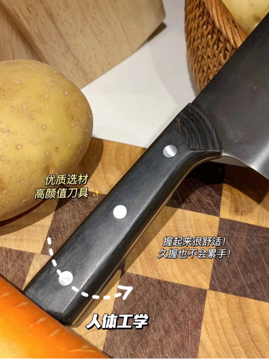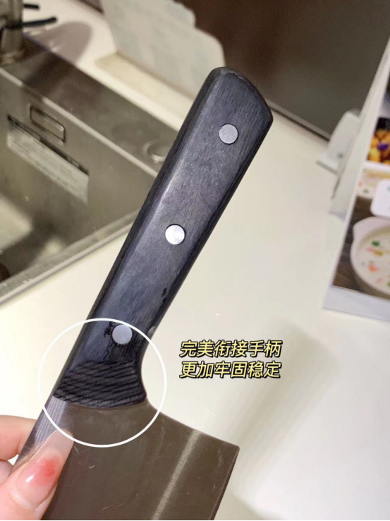 ✅ 一体成型不断刀 刀刃和刀身一体冲压,轻松拍蒜 🔺 黑彩木手柄,稳定性好,不发霉,不松弛 子母钉固定,长久耐用!