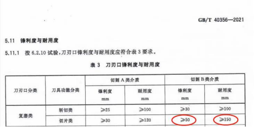 ✅ 锋利度、耐久度非比寻常! 为什么可以保证这把刀3年免磨刀❓ 让我们从实验测试数据分析: 国家2021年出台的刀具行业标准规定, 对刀具锋利度≥50mm(前3刀累计切削量)为合格, 耐久度≥150mm(前60刀累计切削量) 而今天这款永切王微芽刀 锋利度高达159.6❗️ ❗️ ❗️