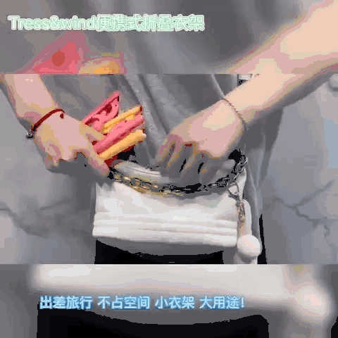 入这一套便携式折叠衣架 衣架界无孔不入的小强 也就半个巴掌大,拿几个随手塞塞 完美钻进各个缝隙or随身小包包里