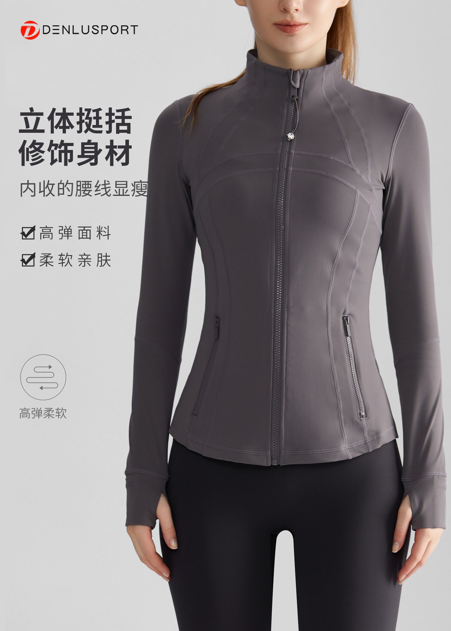 重工小立领DY66133#秋冬款拉链修身运动瑜伽外套后背分割设计立体剪裁