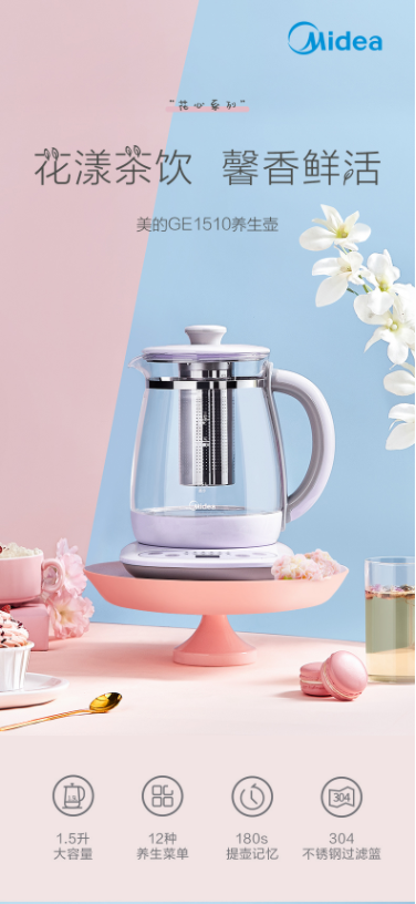 美的(Midea)GE1510养生壶小型迷你家用多功能全自动玻璃水壶煎药壶迷你煮茶器花茶壶