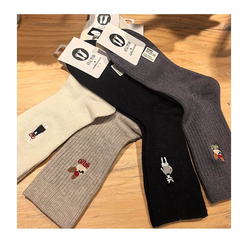韩系简约刺绣动物暖绒袜-纪念日百货门店同款165296348