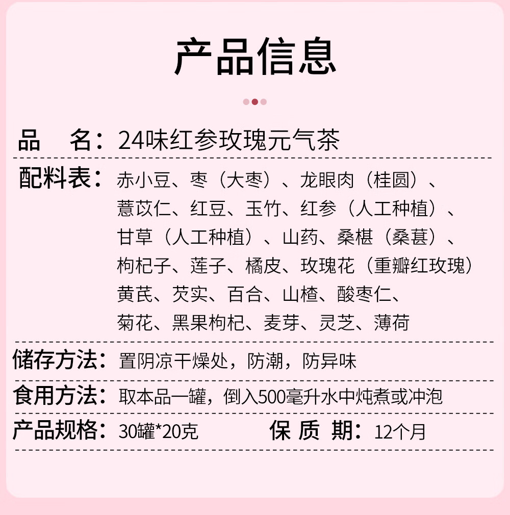 神农金康 24味红参玫瑰元气茶 原生态真滋补 喝护家人健康