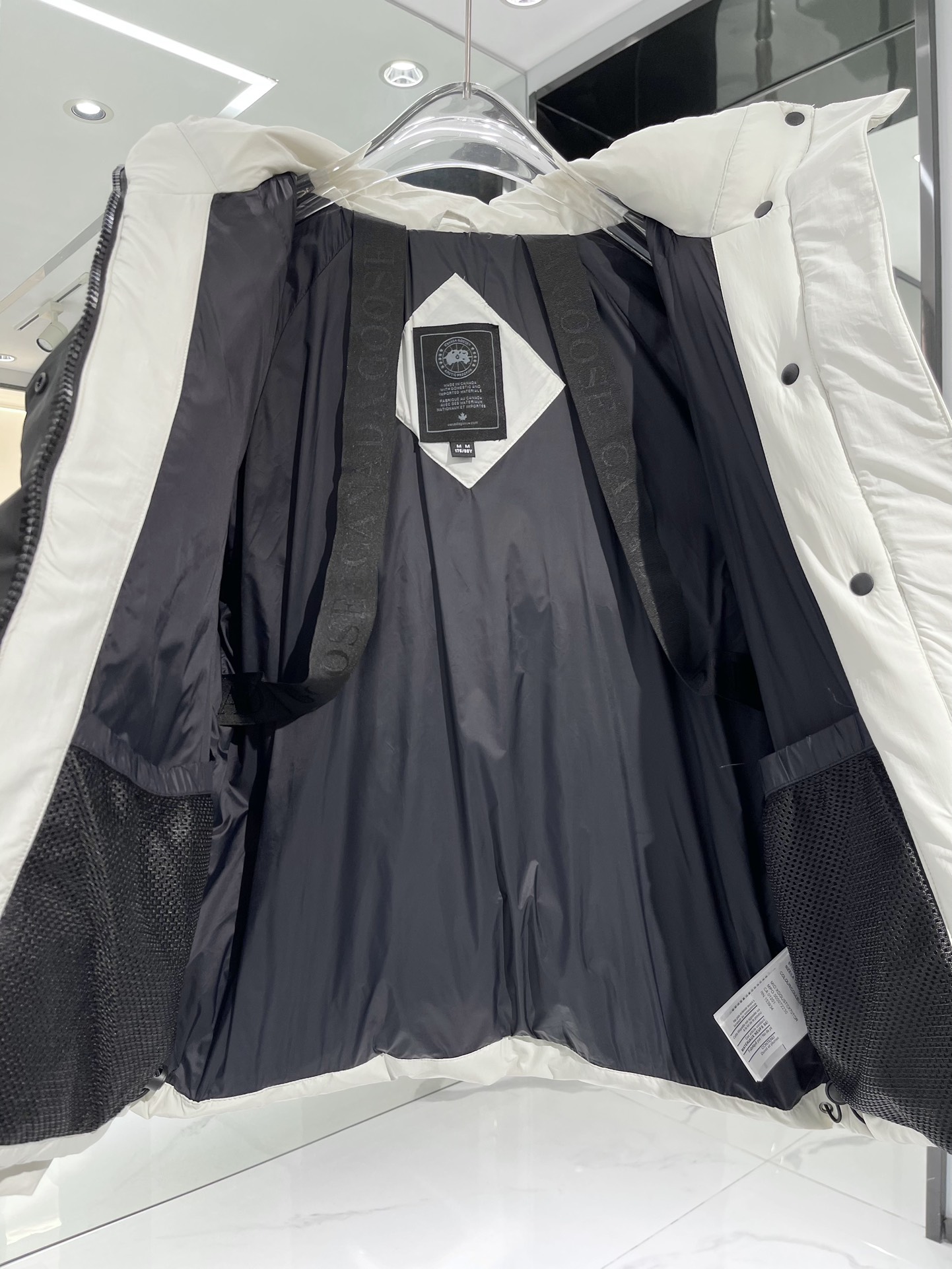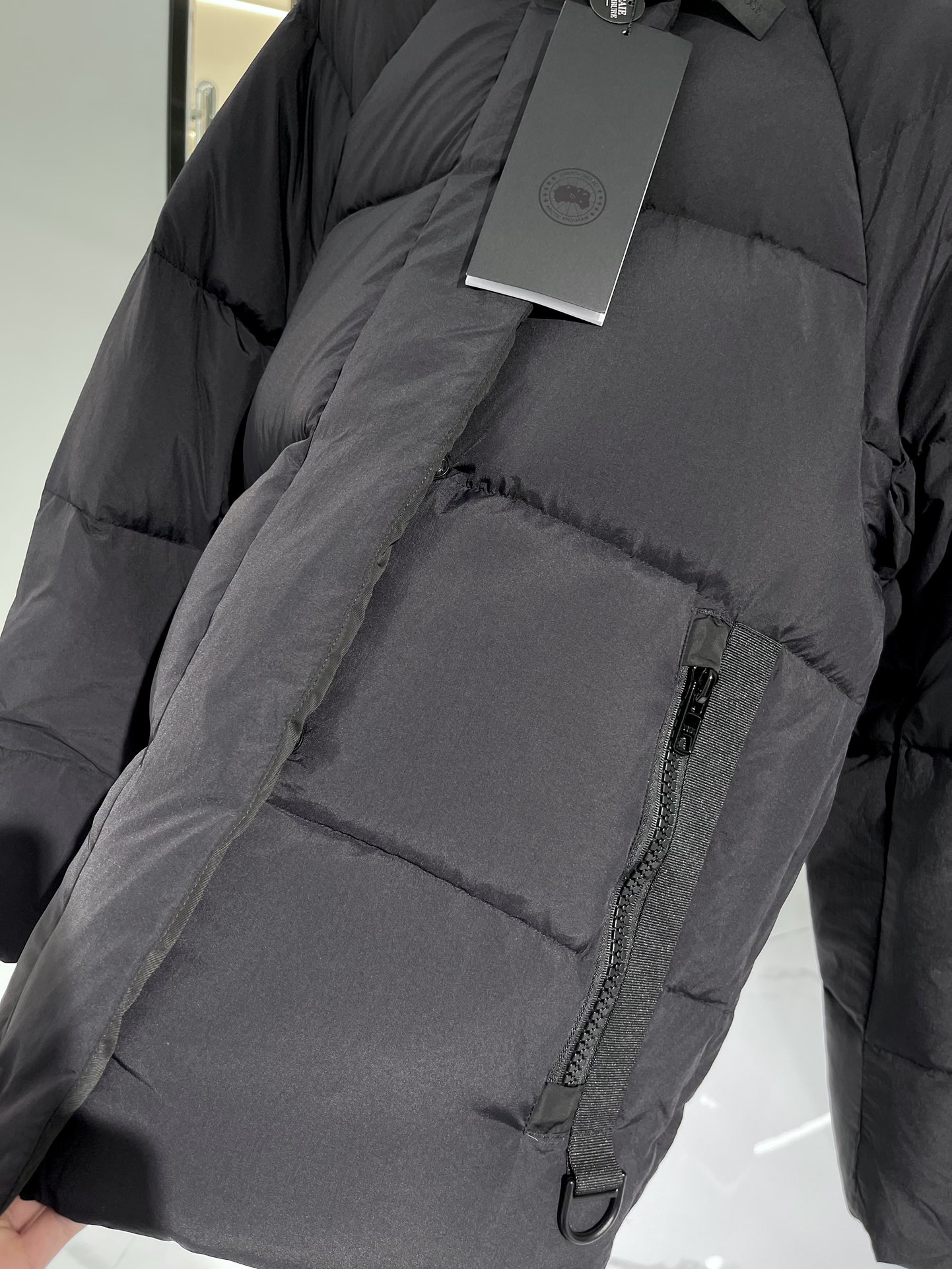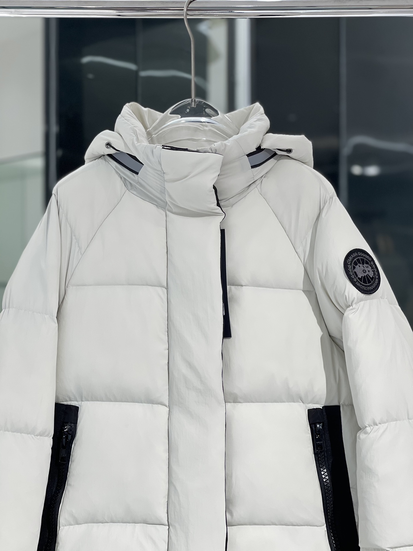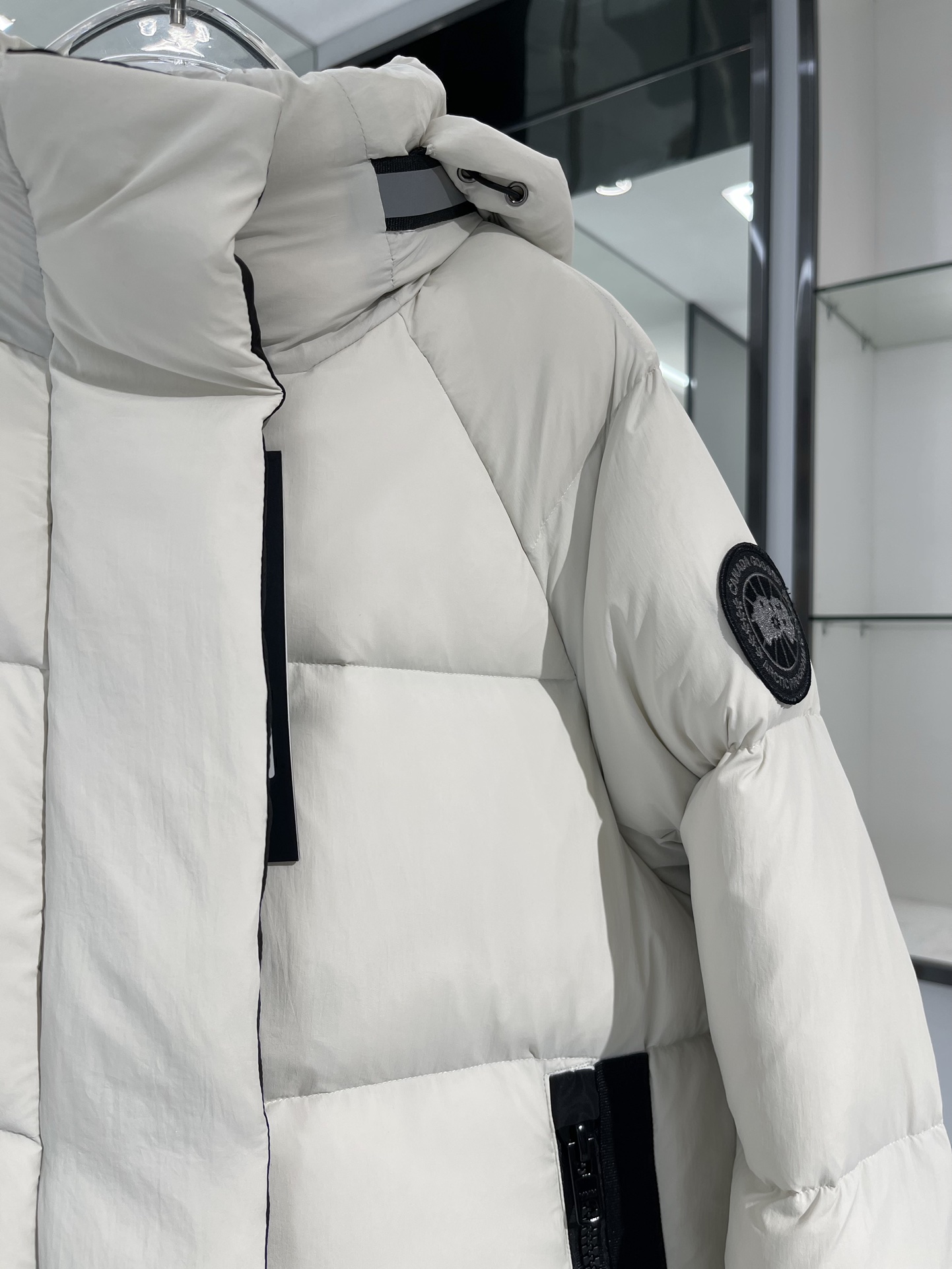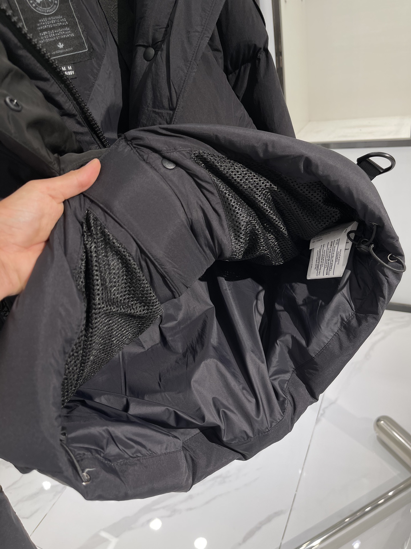 羽绒门襟在双向拉链上面设计有隐形按扣开合,防风保暖。从底部拉开拉链,可以增加活动幅度或提高透气性