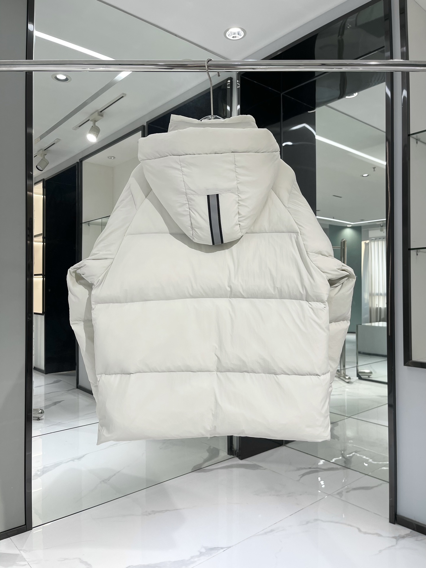 可拆卸的优质保温兜帽可双向调节,并且填充了羽绒,给头部和脖颈周围带来更大的柔软感!360度反光,兜帽后的反光带提高了在昏暗环境中的可见性