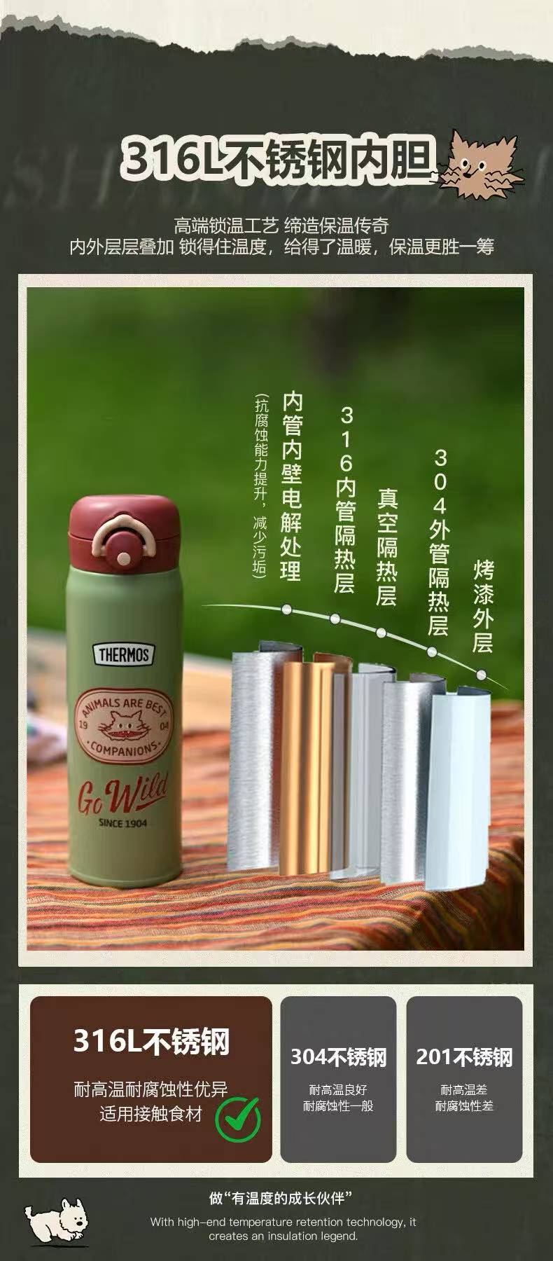 膳魔师复古系列大童直饮杯500ml