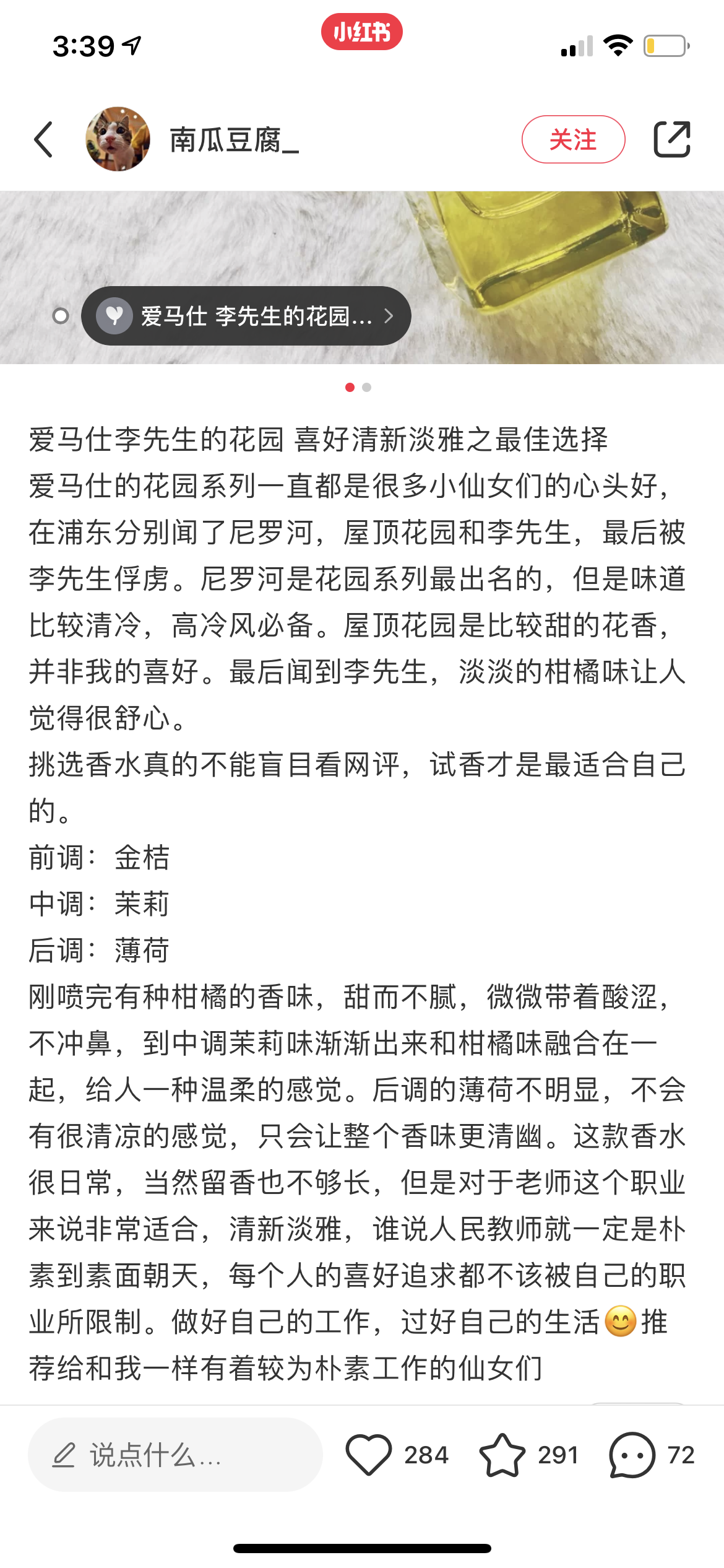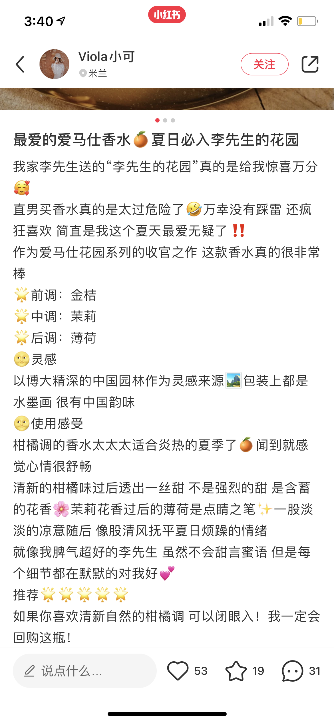 Hermes爱马仕 李先生的花园淡香水50ml 柑橘味清新淡雅
