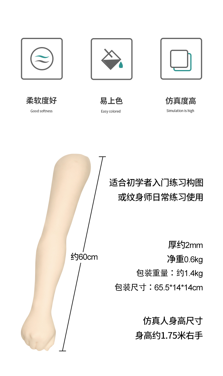 加厚纹身练习硅胶手臂假胳膊刺青花臂装饰作品惊蛰刺青器材