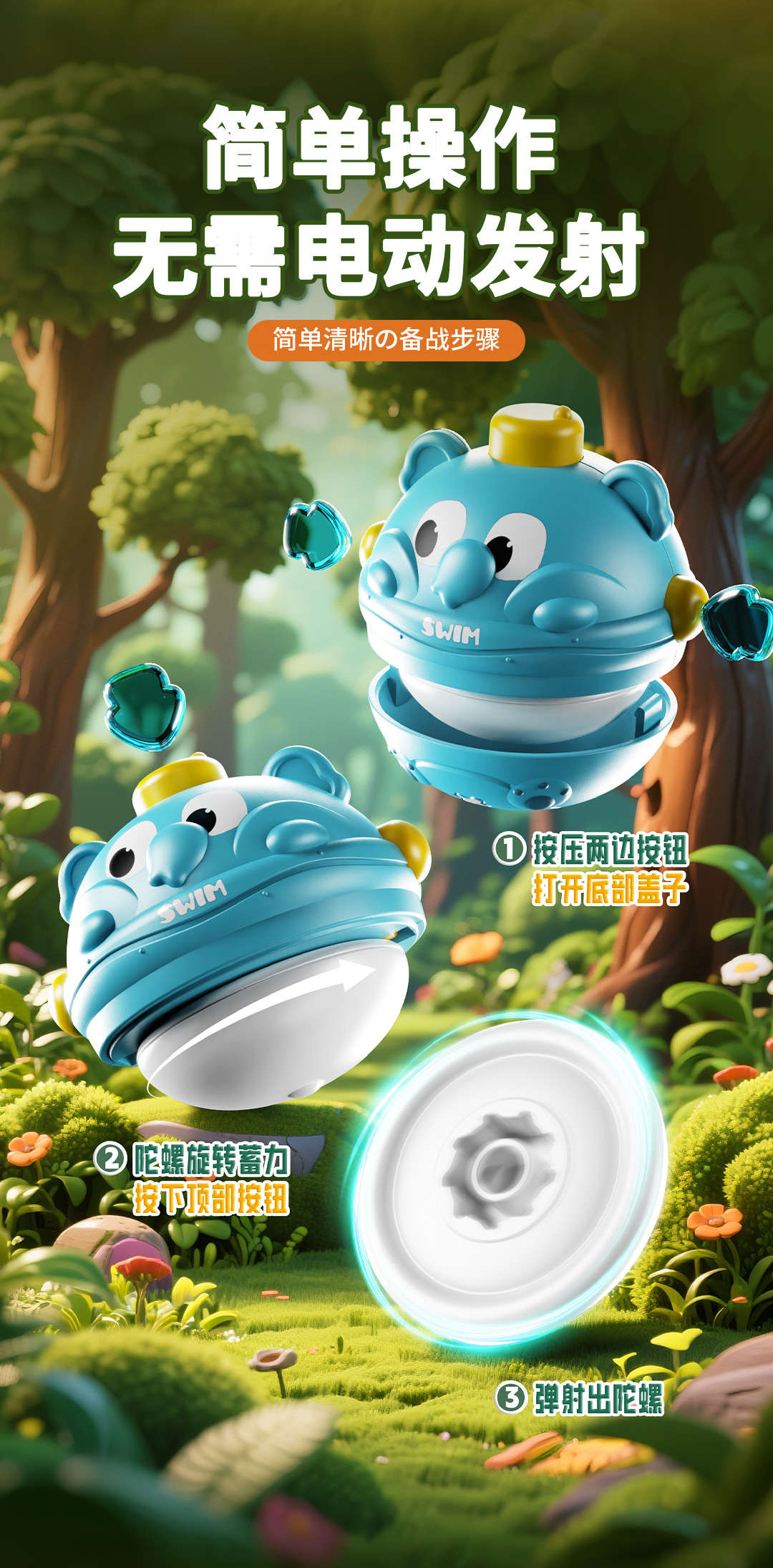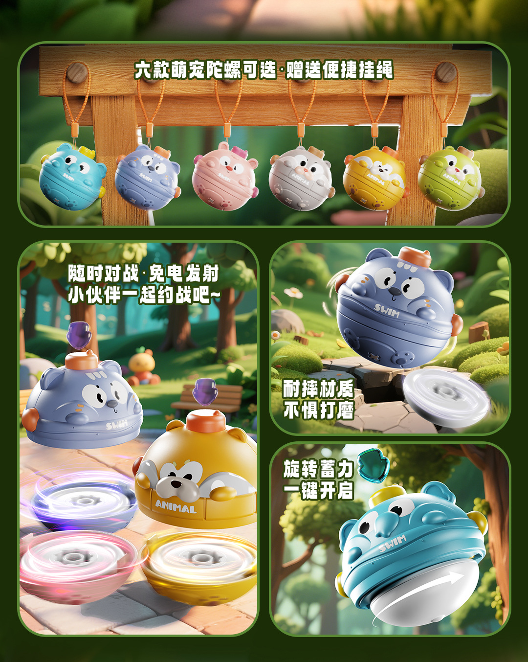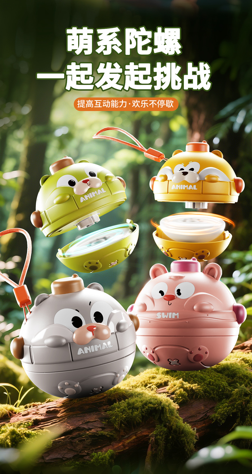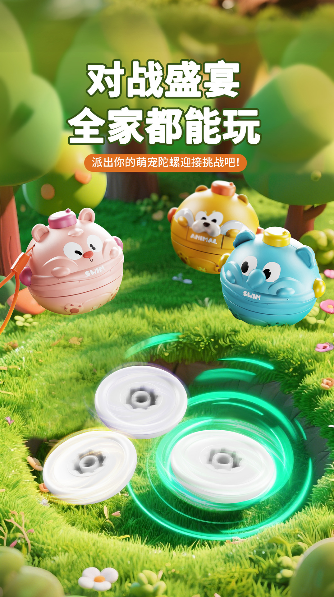 【18.9/2个装】一按炫技陀螺 开始对战 萌宠动物陀螺碰撞转转乐亲子互动 桌面游戏互动 无毒无异味 儿童玩具幼儿园礼品礼物