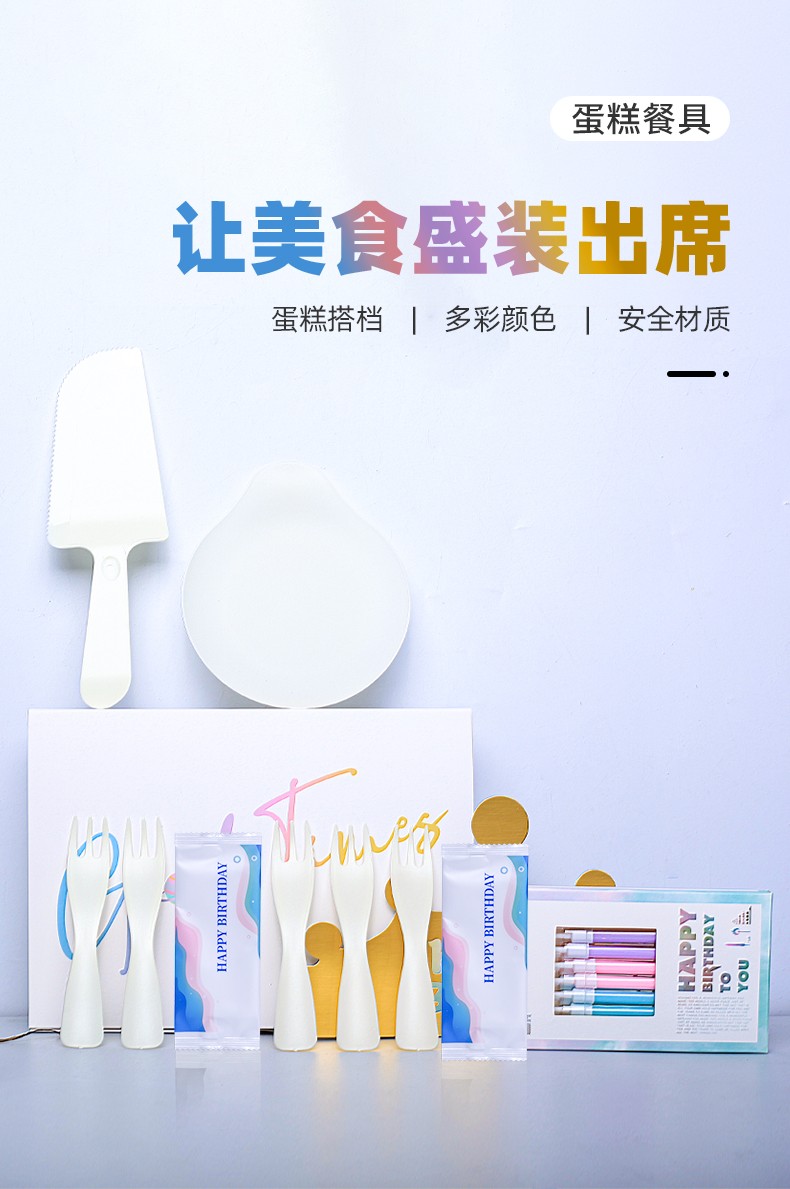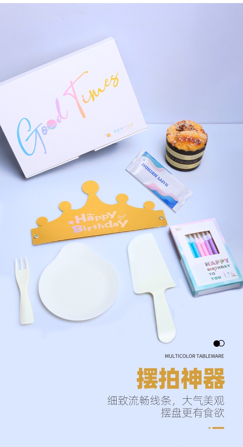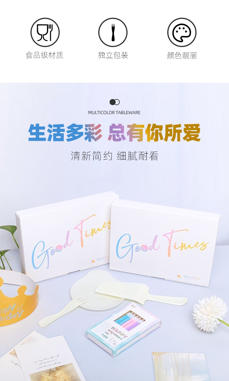 Good times纸盒生日蛋糕刀叉盘帽子湿巾蜡烛组合套盒 高档餐具组合一次性塑料刀叉餐具