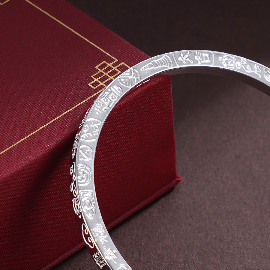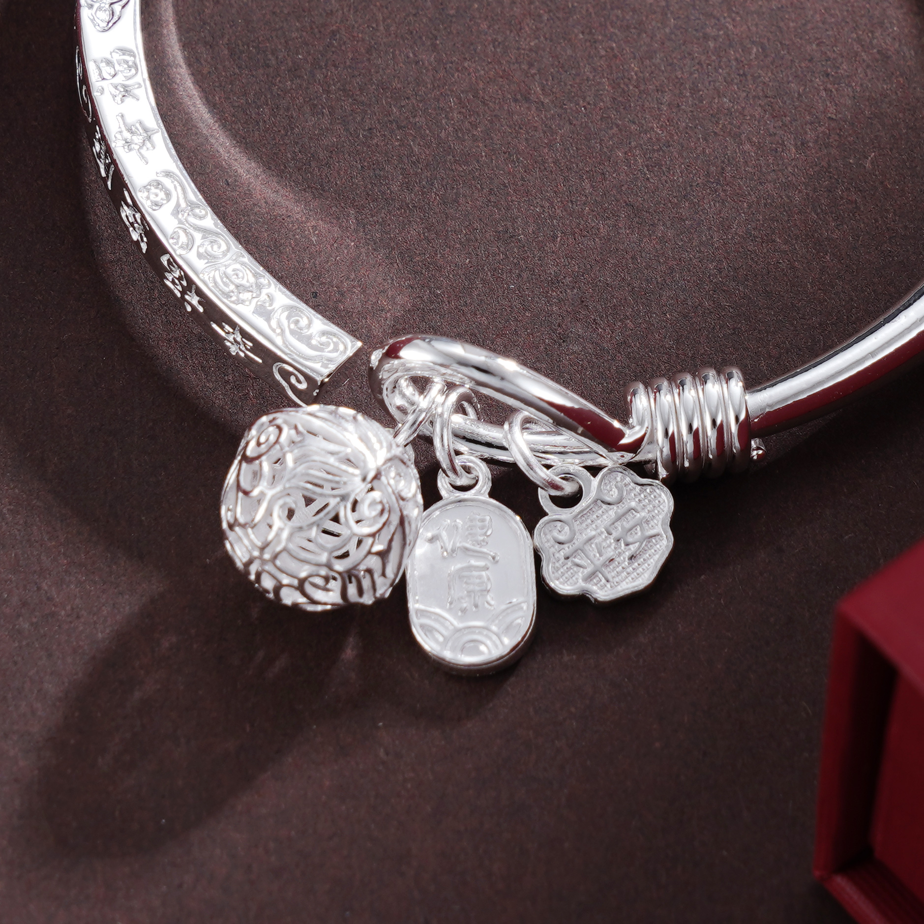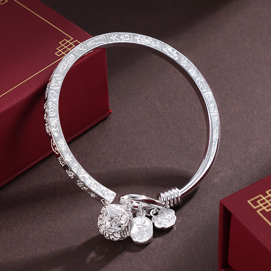 子佩集S999银【四方吉言】手镯【SZ008353】纯银吊球开口2412