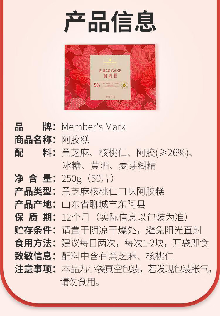 【山姆】Member’s Mark 阿胶糕 250g 阿胶块 女性滋补品 即食阿胶 独立包装新旧包装随机发货