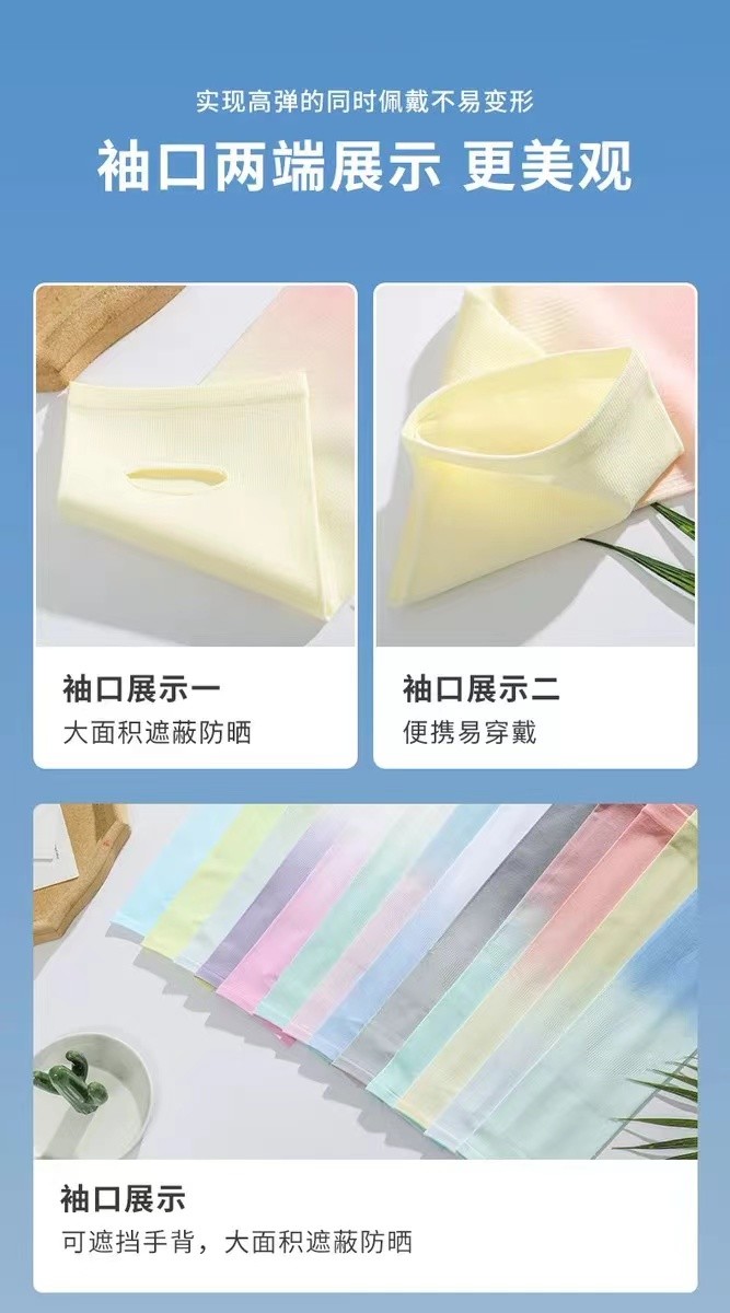 冰袖的颜色比较丰富,但都以浅色系为主,很好搭配。夏天马上就要来了,防紫外线的冰袖快买起来吧,现在前200双买一送一,19.9元到手两双,200双之后下单不再赠送了,下单后由诸暨的工厂发货,很快就能送到大家手里哦~