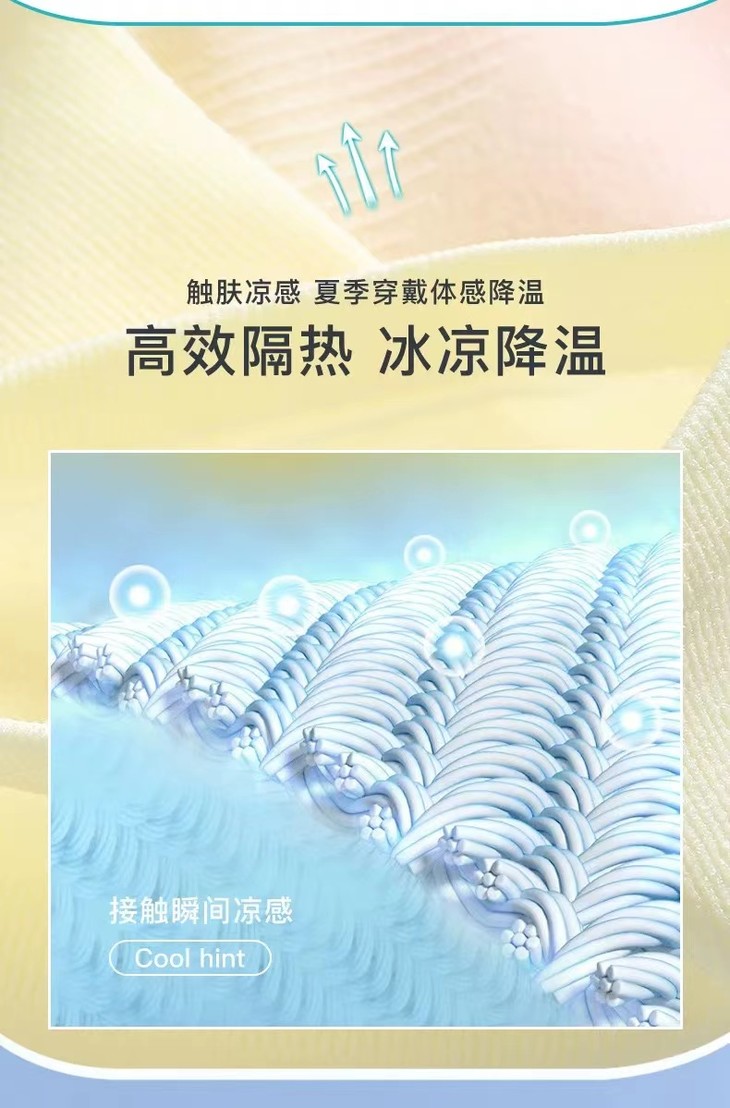 除了防紫外线的性能,作为贴身衣物,体感也很重要。“这款冰袖选用了蜂窝式针织方式,这样织成的面料是很透气的,而且我们还在面料中添加了冰凉助剂——含有冰丝纱,冰丝纱又由极细的冰丝纤维构成,每根纤维中,含有10000+个透气孔,所以戴上它肤感温度能降低5℃左右。”