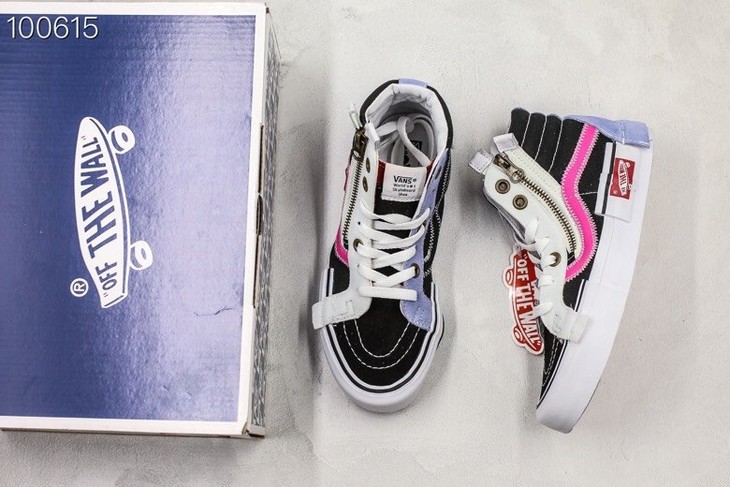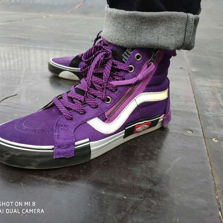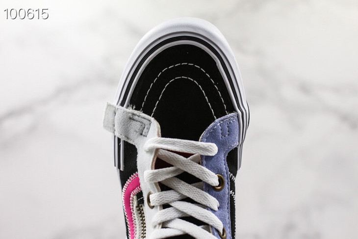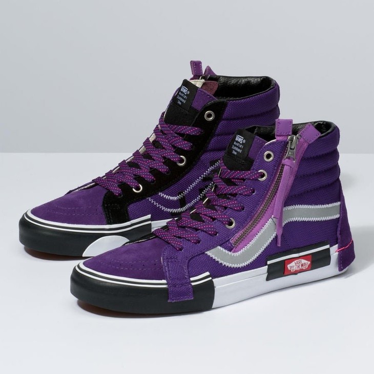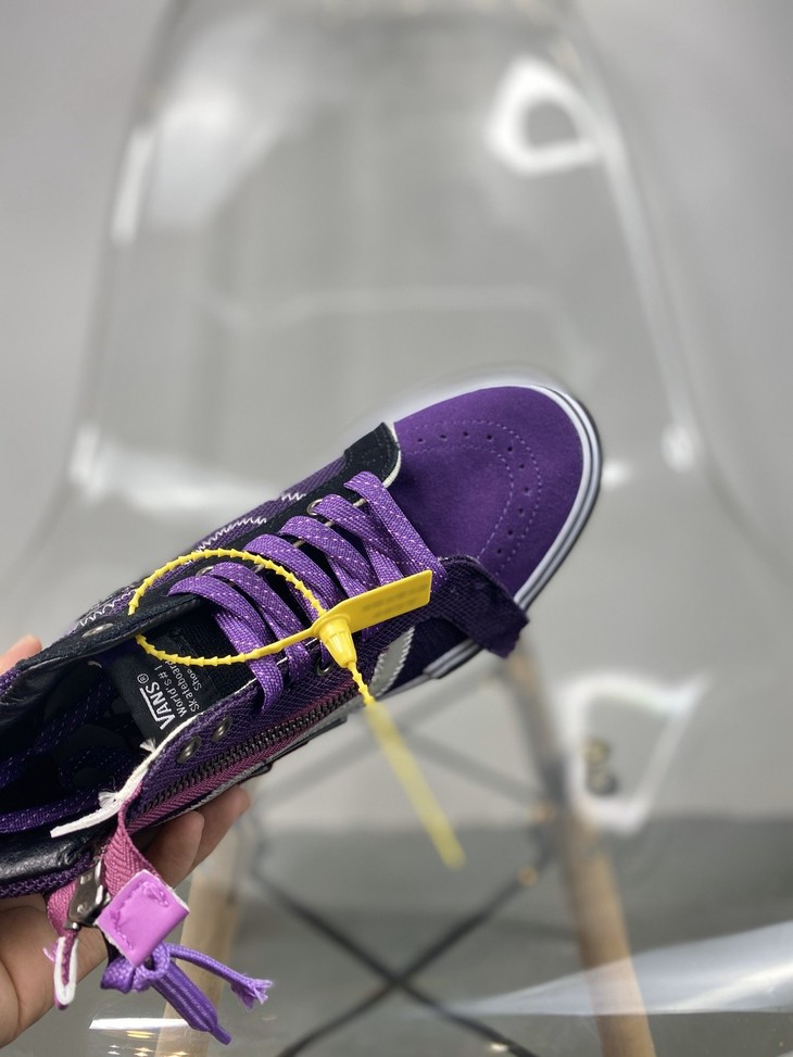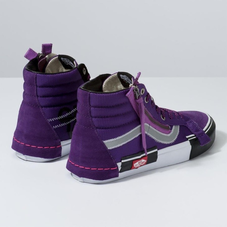 新一代解构Vans Vault Sk8-Hi Cap LX 有着质感十足的翻毛皮、拉链设计、粗犷的走线,都颇具辨识度 蓝色 白色 黑色 灰色 紫色 紫粉