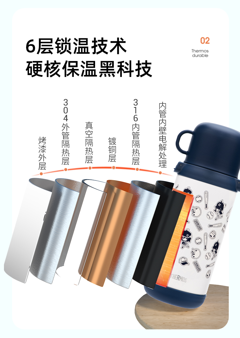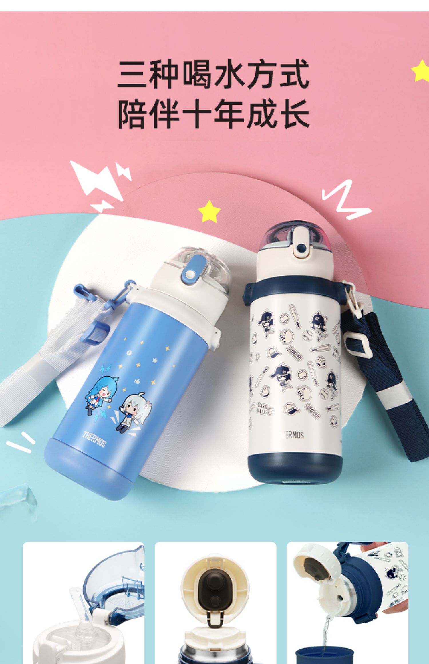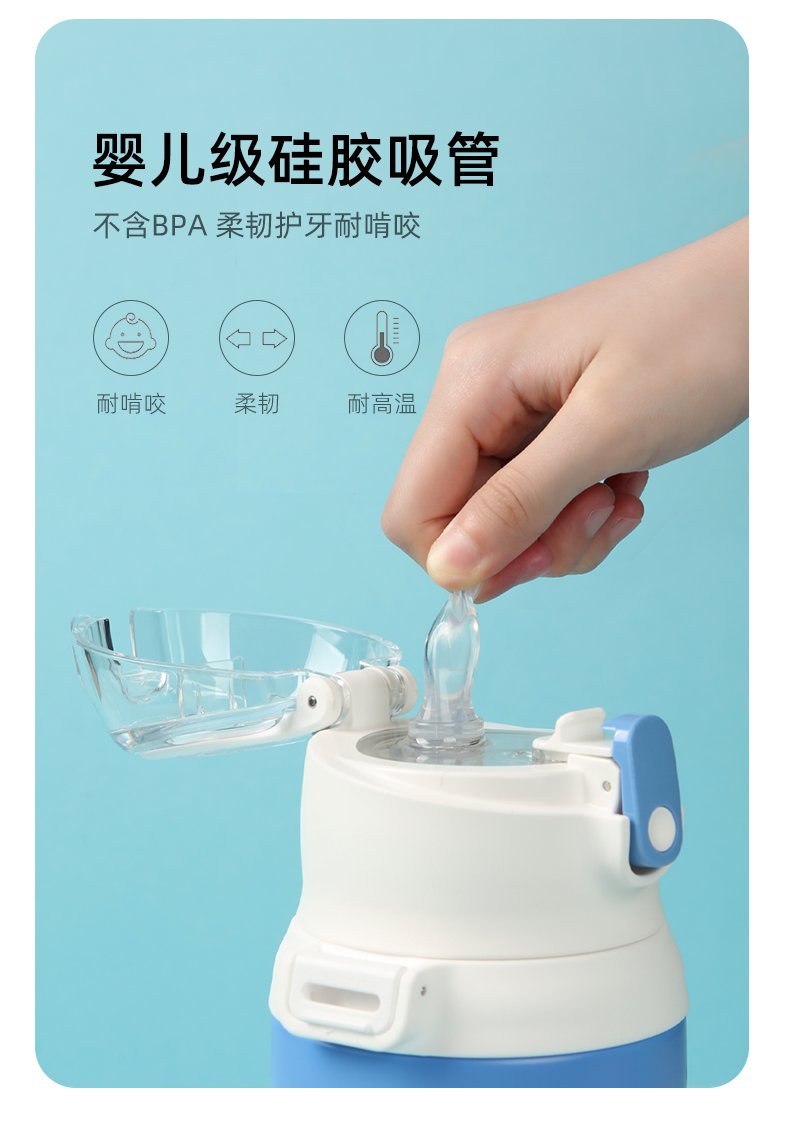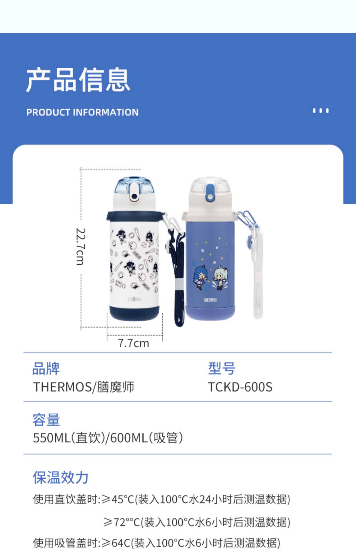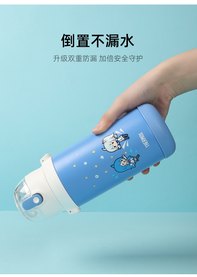 膳魔师儿童保温杯双盖学生便携吸管杯直饮杯316L水杯600ml /SMS-TCKD-600S-BL