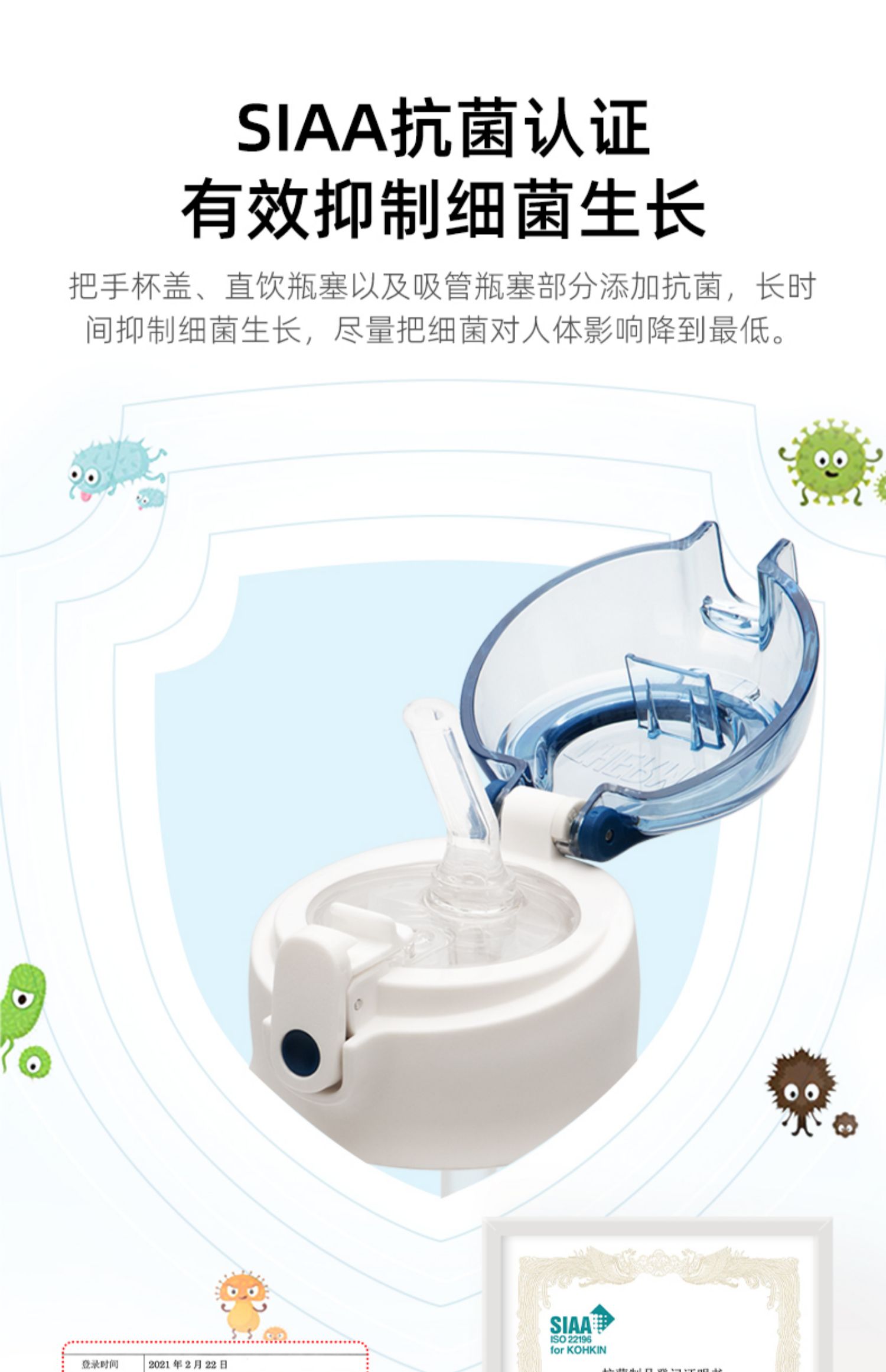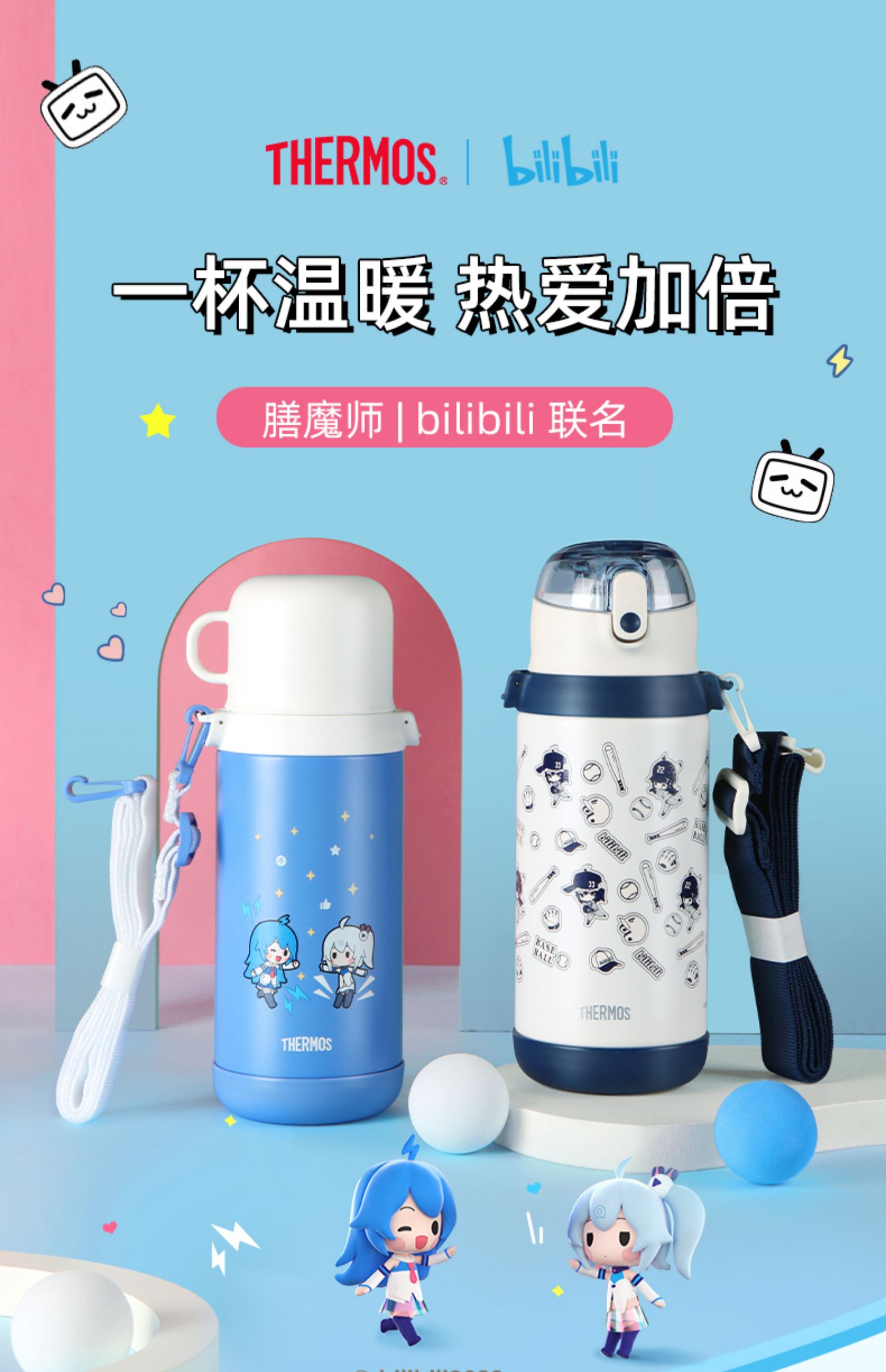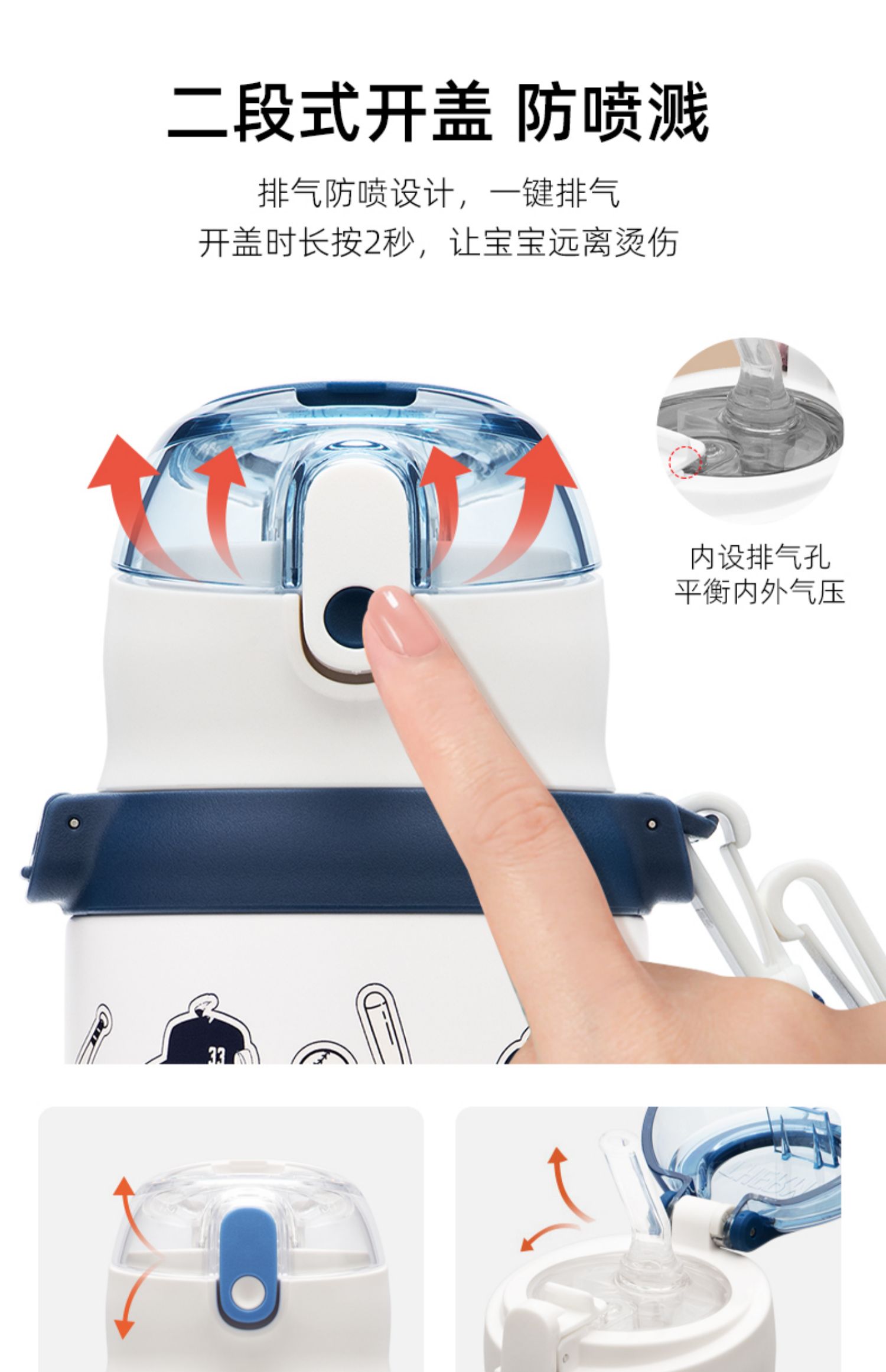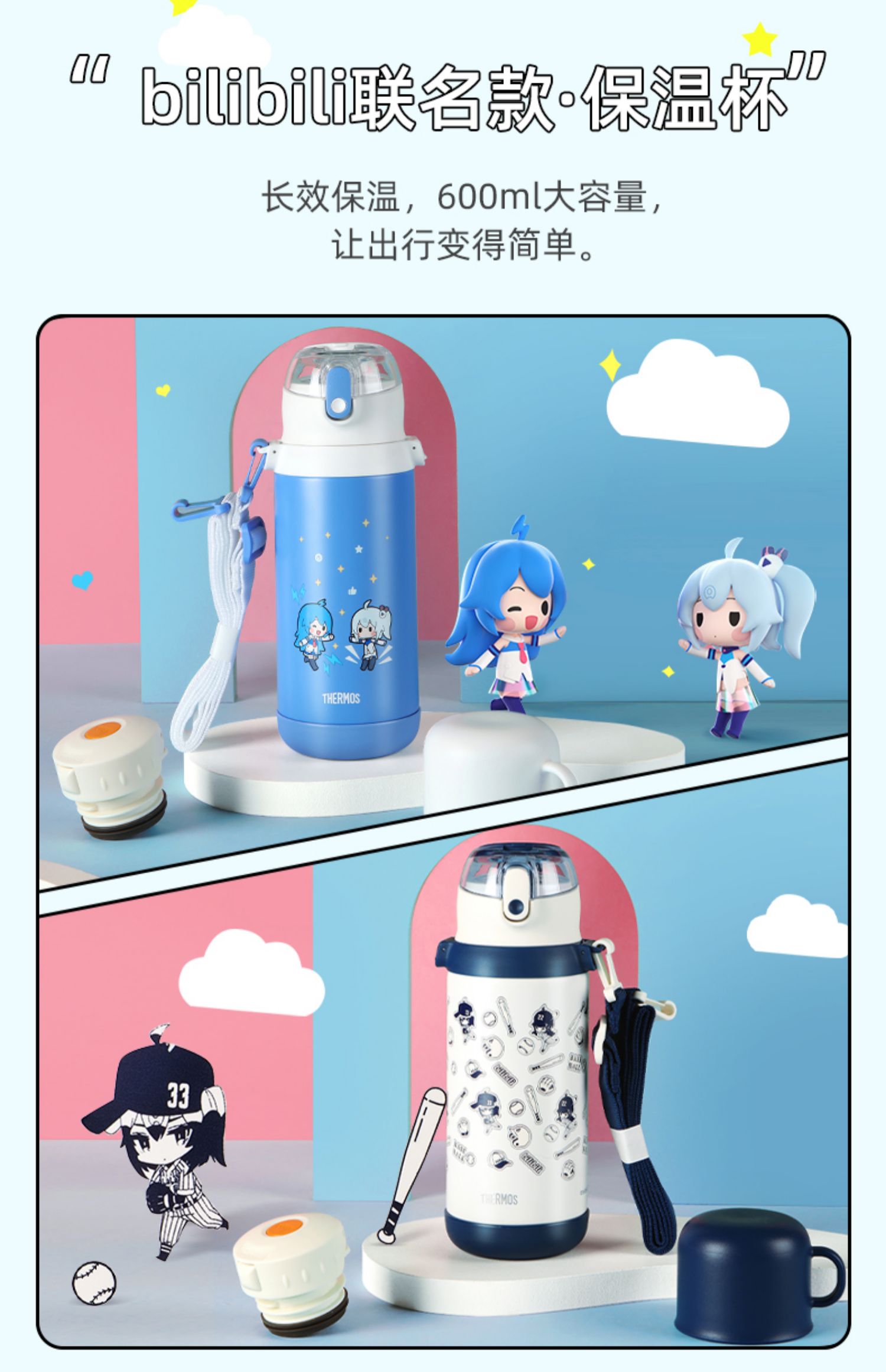膳魔师儿童保温杯双盖学生便携吸管杯直饮杯316L水杯600ml /SMS-TCKD-600S-BL