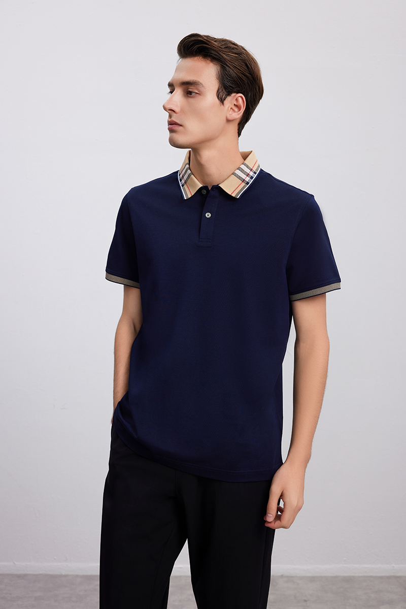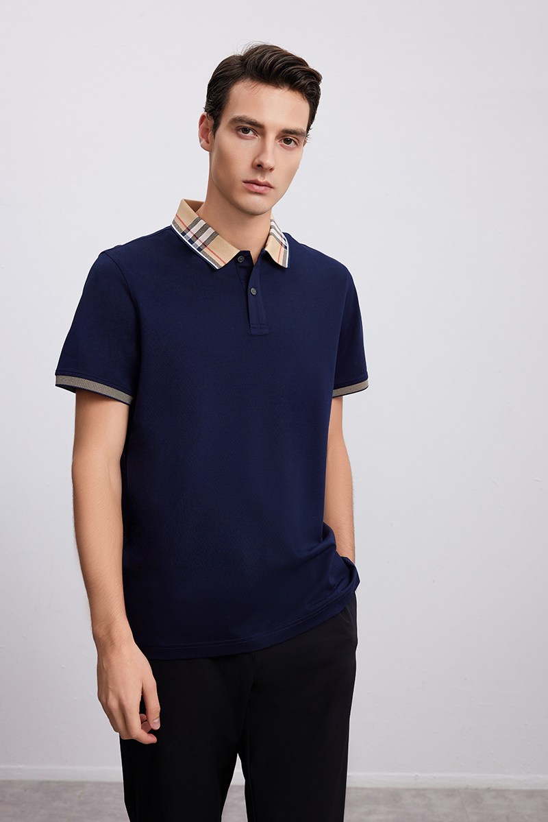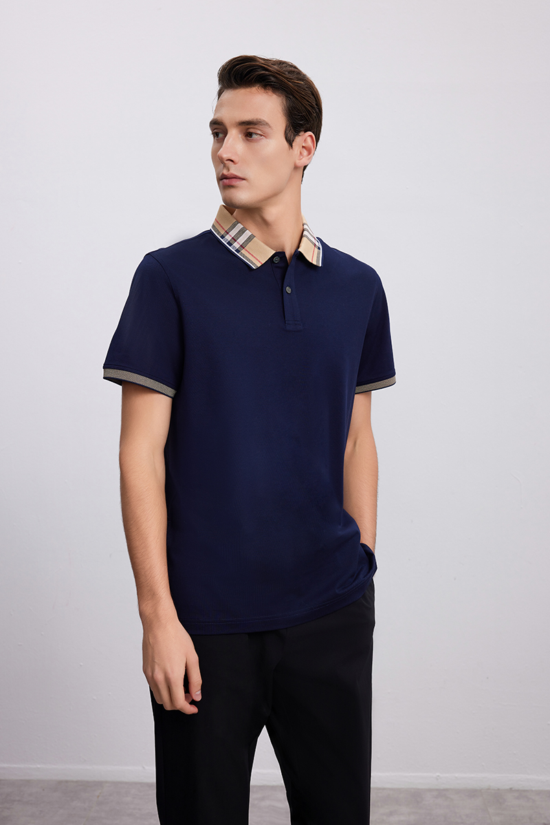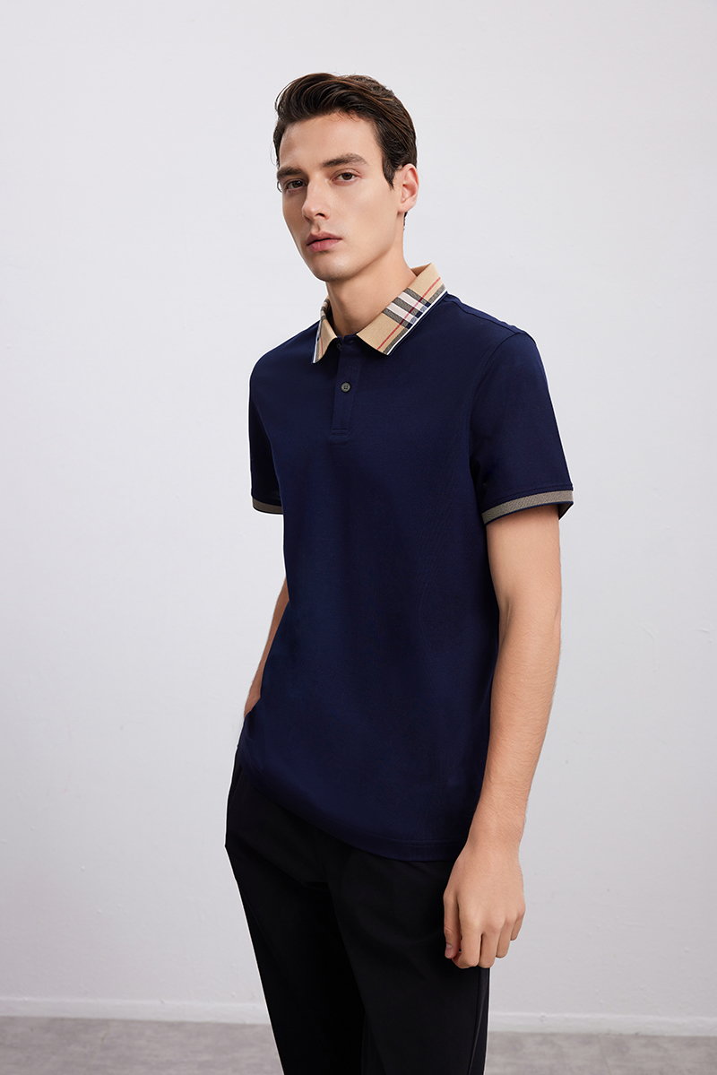 【棉质POLO领T恤衫】24年春夏新品男士时尚商务休闲藏青上衣