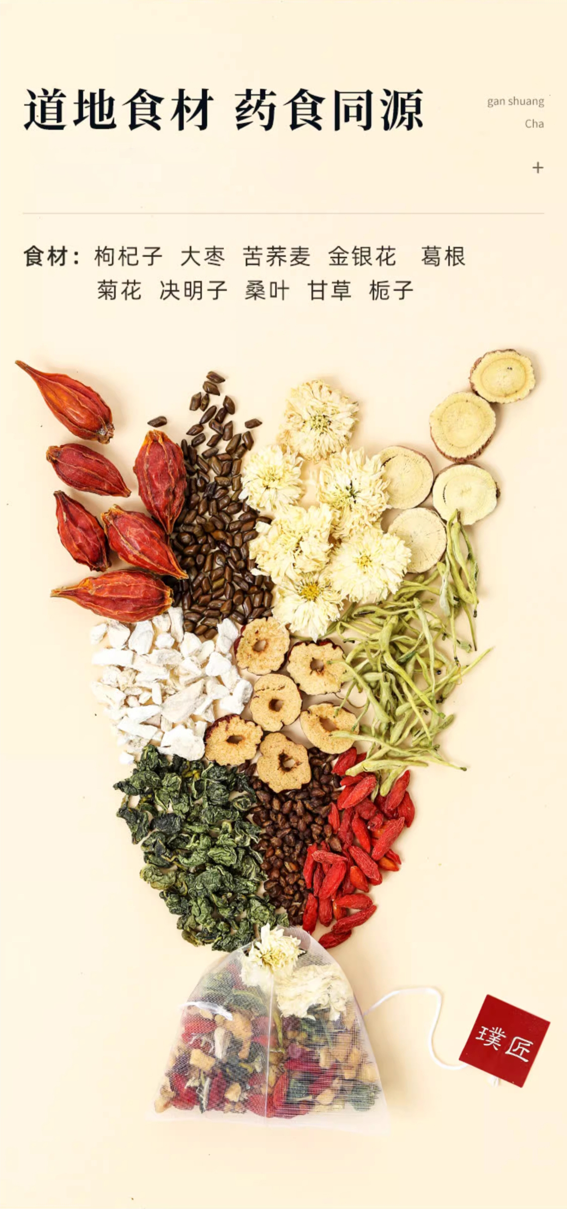 璞匠甘爽茶茶包金银花菊花甘草栀子十味配方组合草本茶10g*12袋
