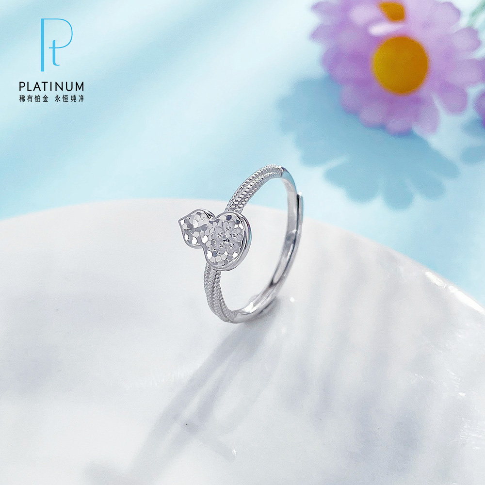 【限时8.8折】【线上铂金馆】PT950 #母亲节 #碎碎冰 【国际铂金协会 精品】铂金实心福禄多多樱花碎碎冰葫芦葫芦戒指活口女戒(BJZ00230)预售产品下单后不退款不退货不换货不补差价)