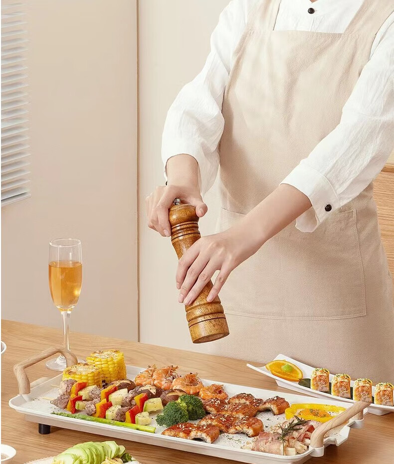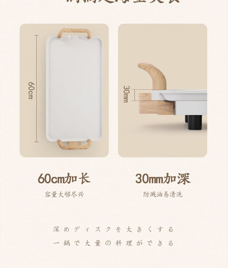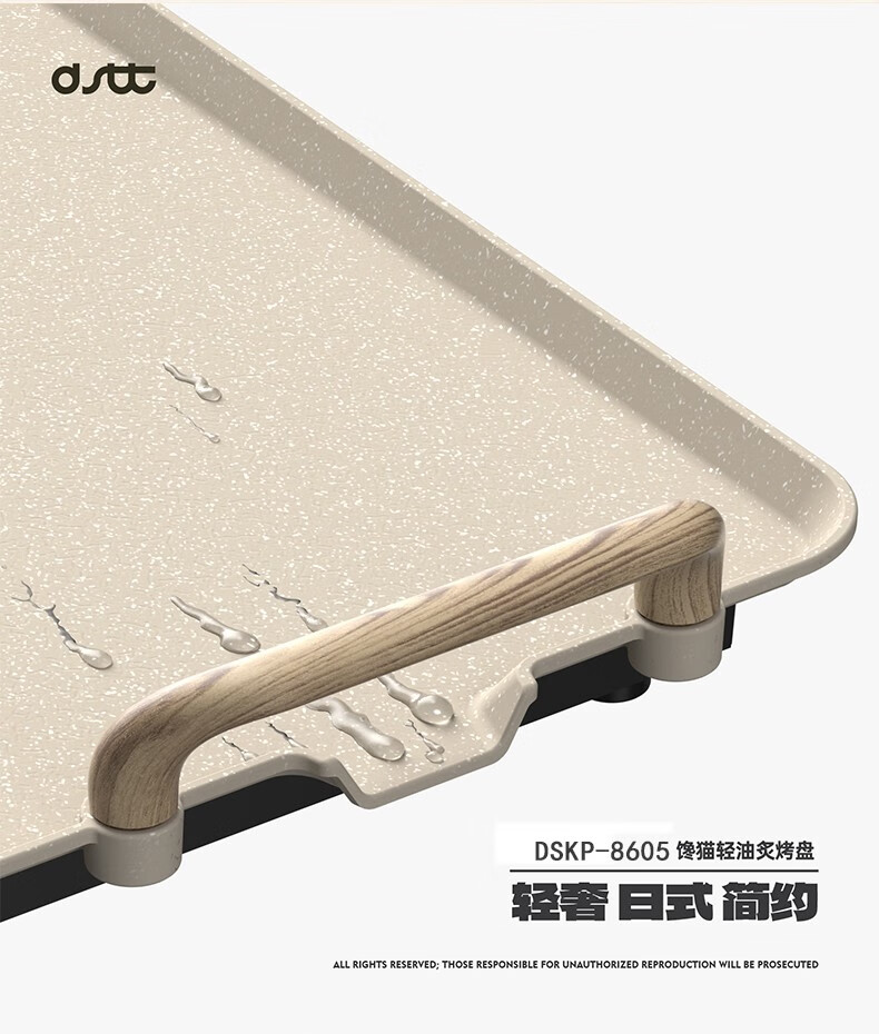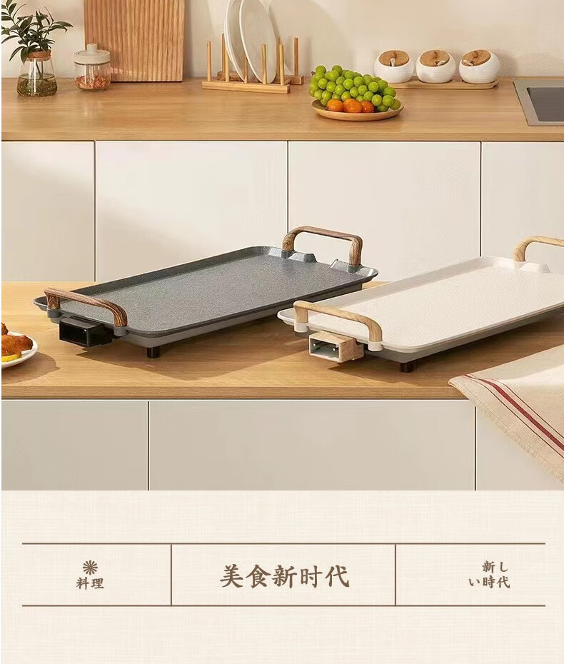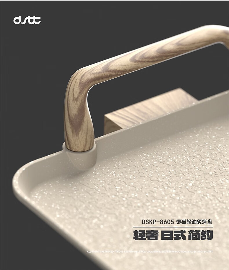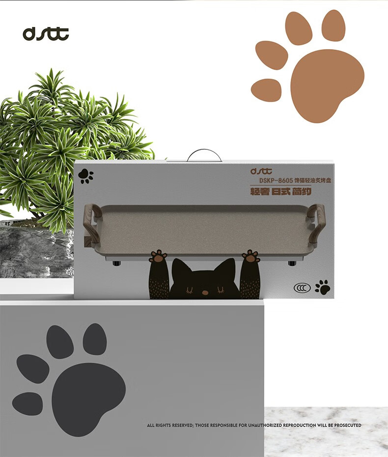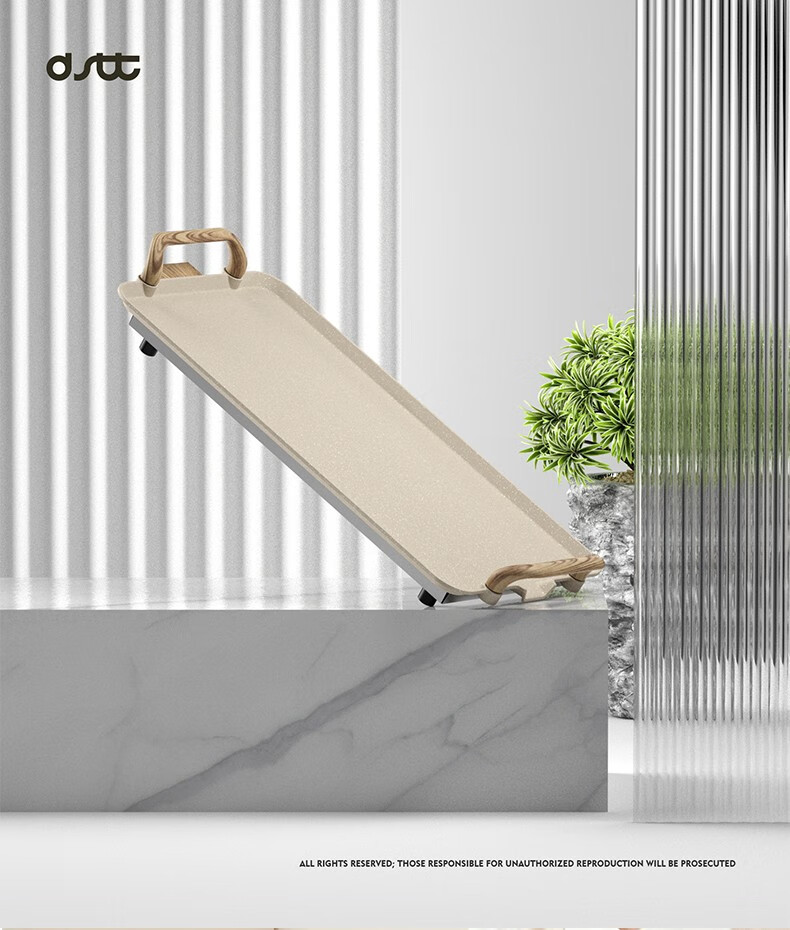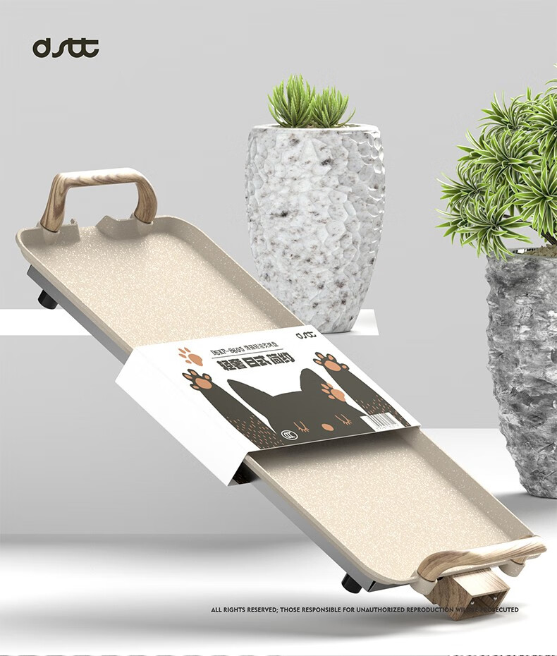 都市太太(DStt)_都市太太馋猫轻油炙烤盘麦饭石不沾电烧烤炉无烟烤盘韩式长方形电热不粘烤肉铁板烧_白色_1层