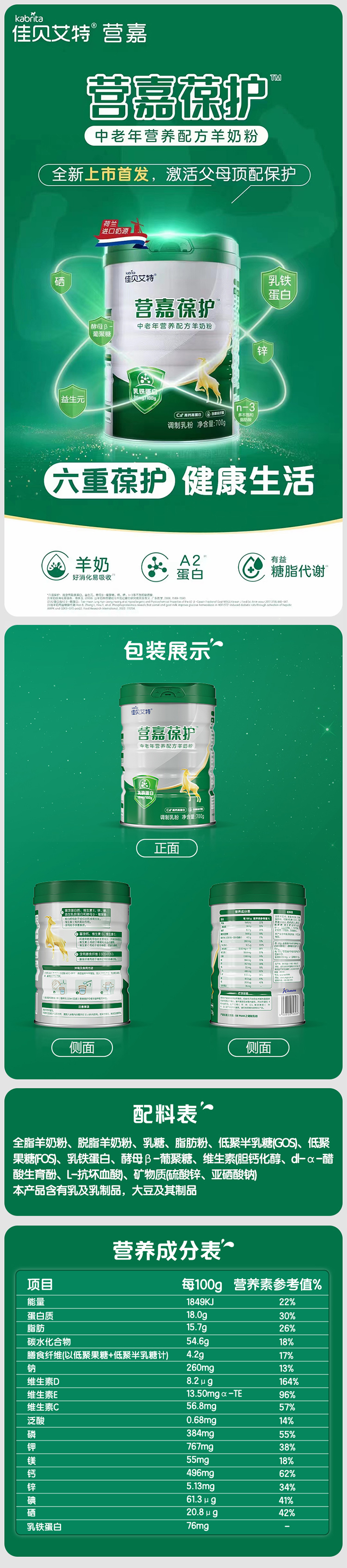 佳贝艾特营嘉中老年营养配方羊奶粉700g/120213 六重保护健康生活送给父母