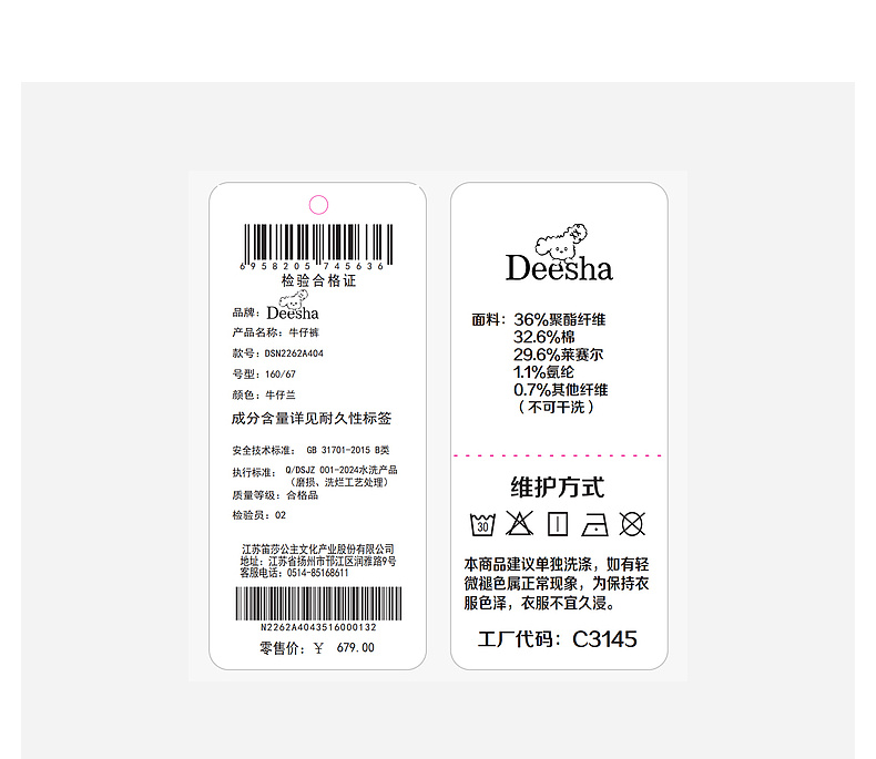 笛莎/Deesha 2026年春季新款女童弯刀牛仔裤