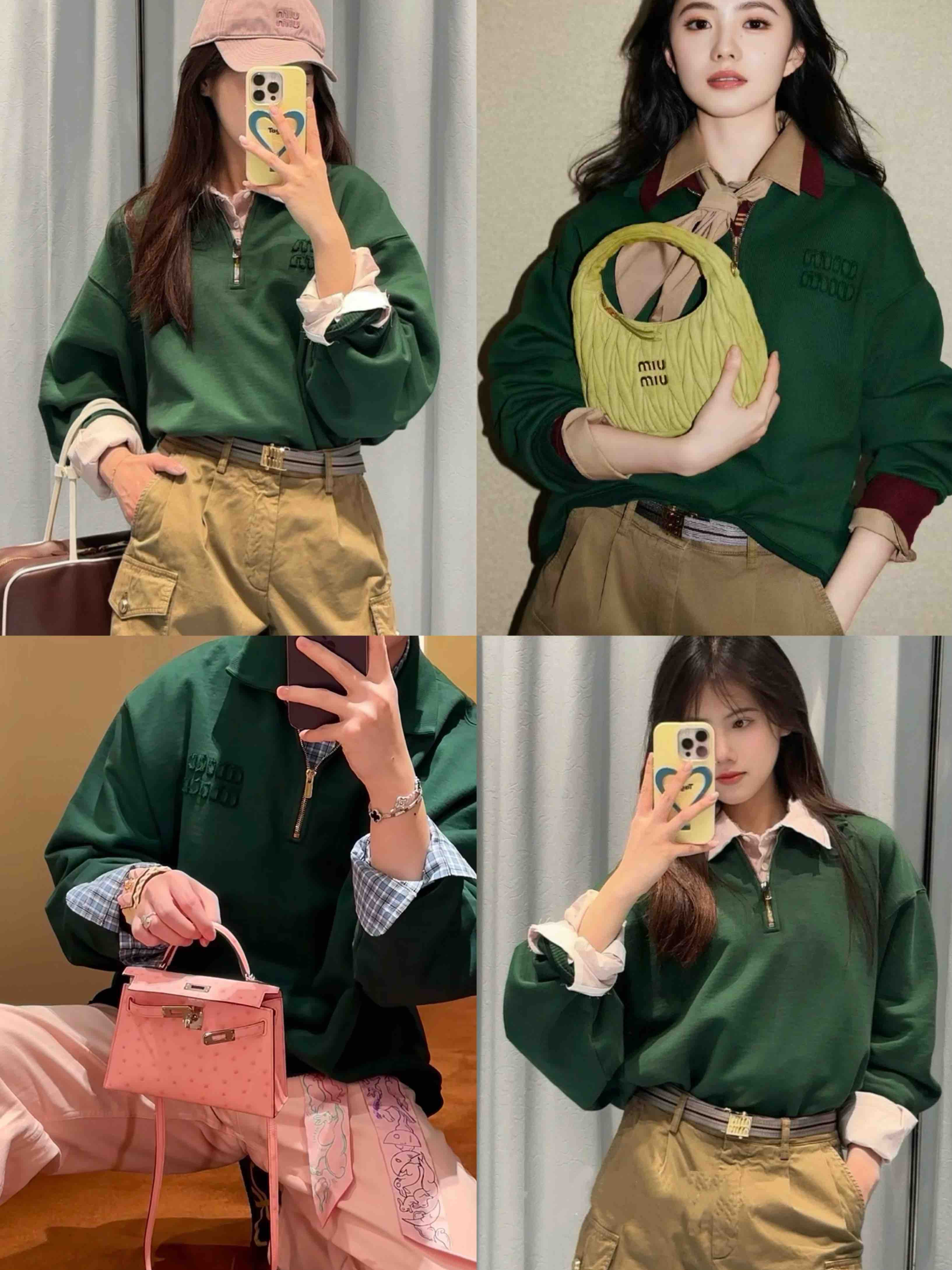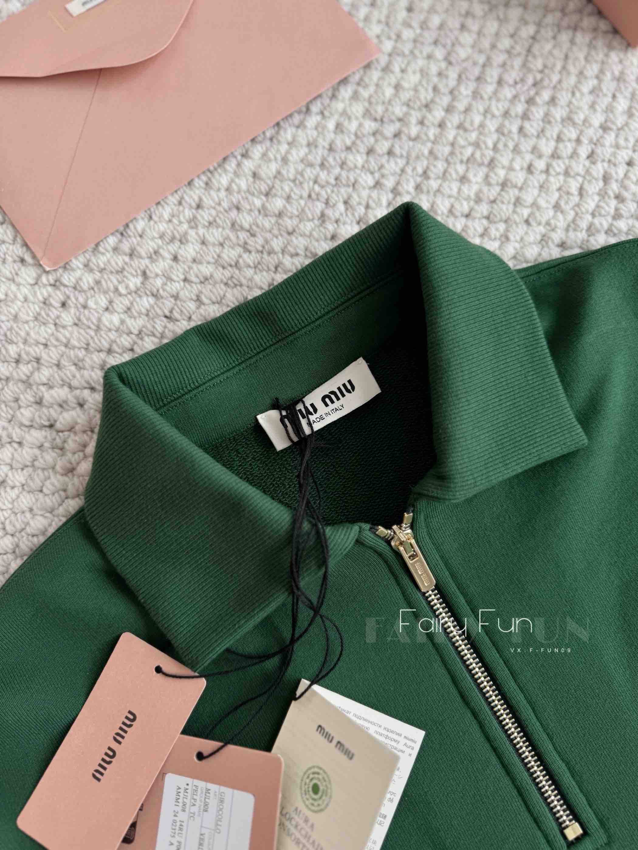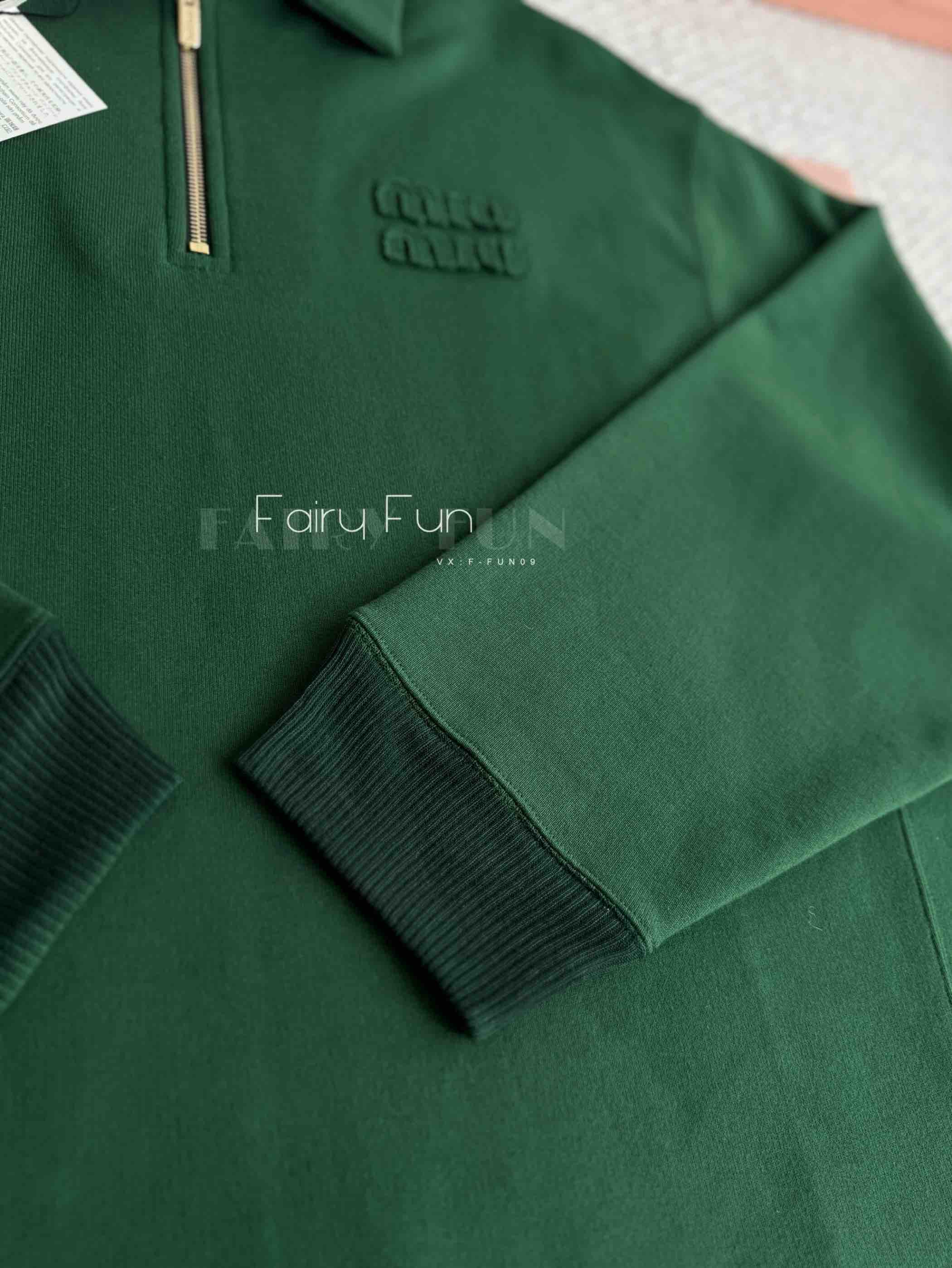 MIU-H 翻领半拉链绿色卫衣