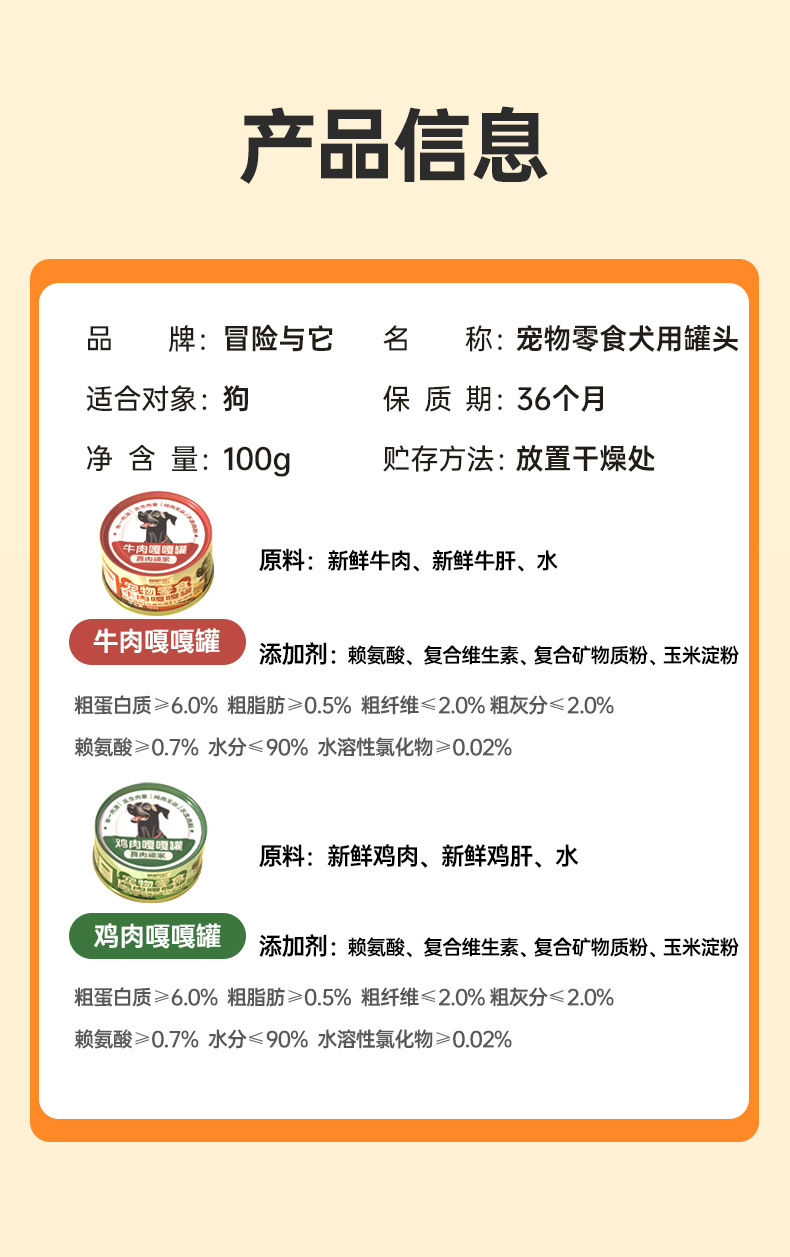 冒险与它 真肉顽家狗狗罐头100g 鸡肉罐牛肉罐拌饭湿粮犬罐 鲜肉配方 0添加 不吃包退