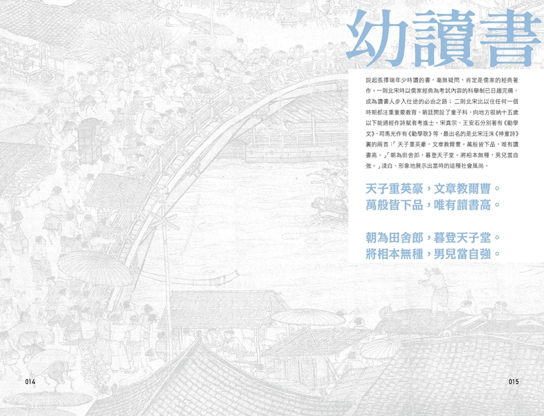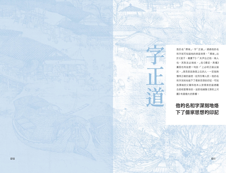 (1) 本書猶如導遊遊覽城市一般,帶着讀者從《清明上河圖》開篇一步步走到篇尾,從城外走到城内,穿街過巷、渡河登橋。通覽全畫,觀察畫面上的每一個細節。景隨步至,引人入勝。