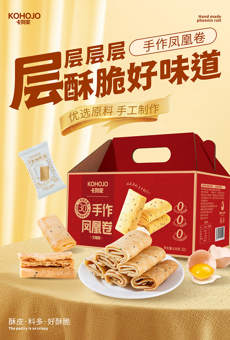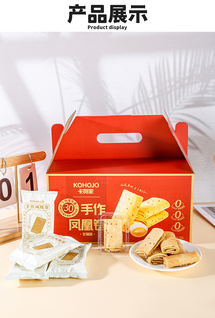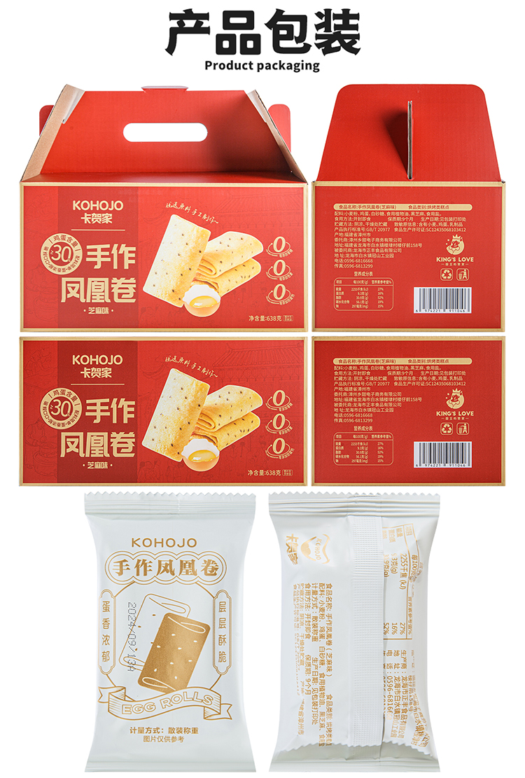 KING'S LOVE 手作凤凰卷(芝麻味)礼盒装 638g/盒 匠心烘焙制作,鸡蛋含量≥30%,配料干净,独立小包装 精美礼盒包装设计