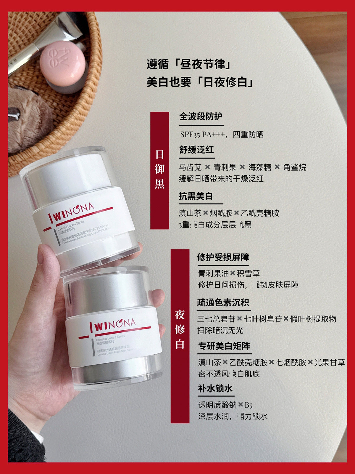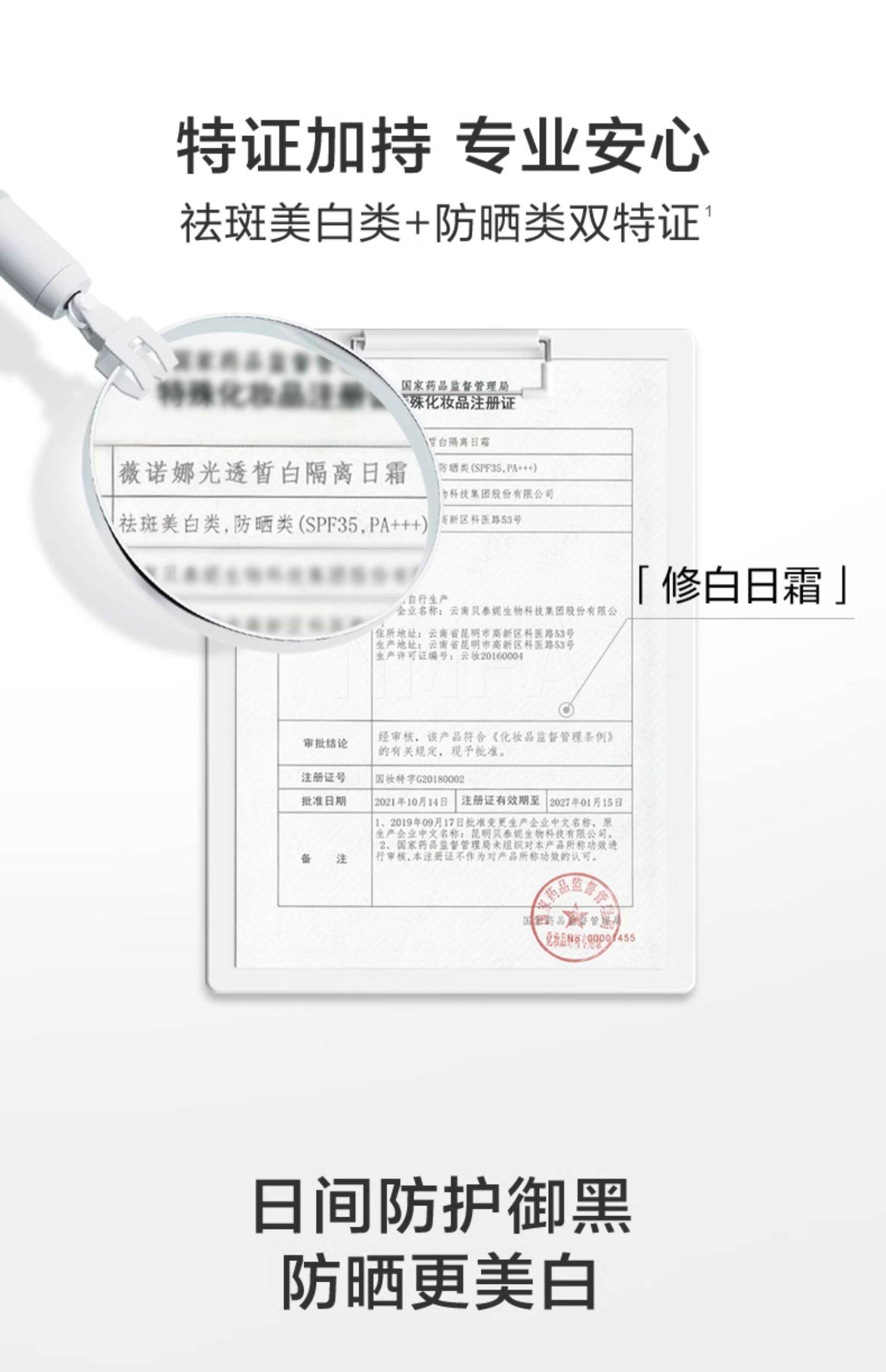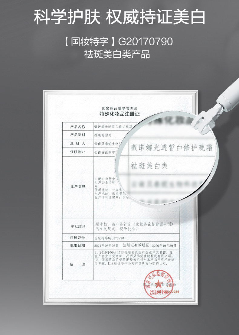 薇诺娜光透皙白隔离修复日霜晚霜50g 改善暗沉TAN斑 光透皙白修护晚霜