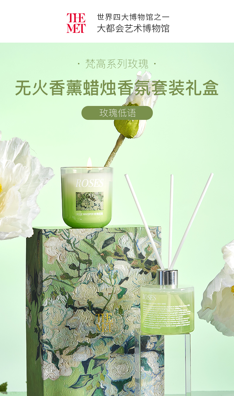 大都会艺术博物馆大师系列 梵高【玫瑰低语】无火香薰蜡烛香氛套装礼盒