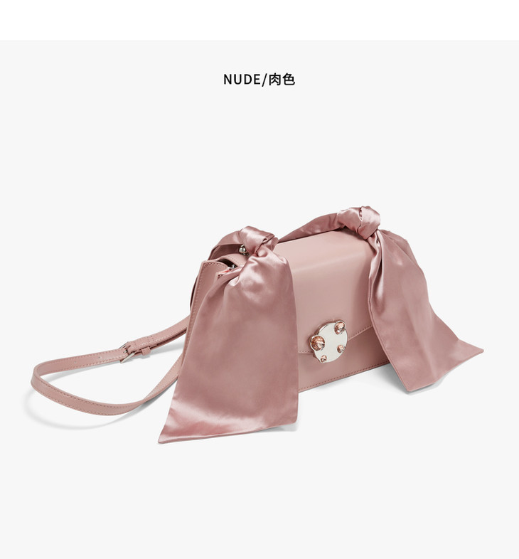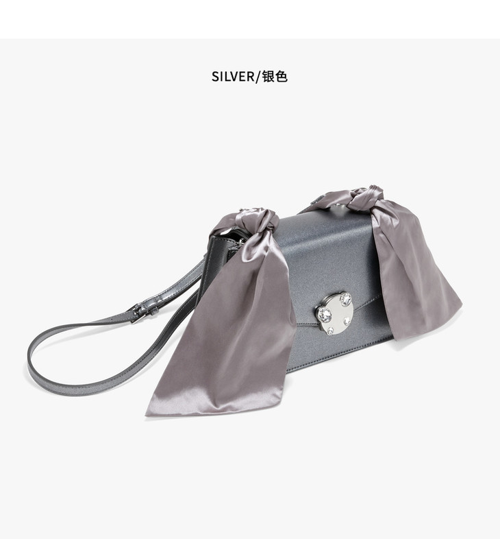 【授权产品】Charles&Keith-2019新年限定单肩包沙丁布肩带饰女翻盖斜挎包