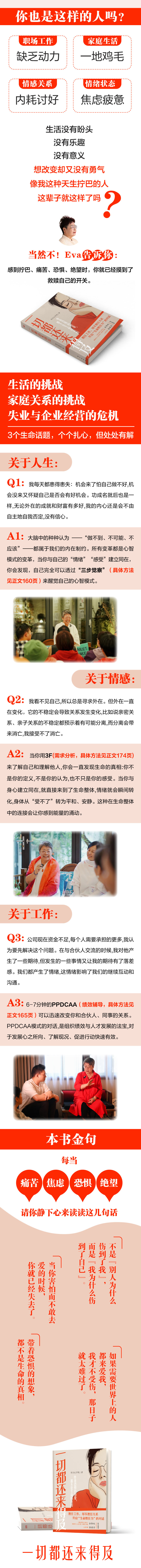 《一切都还来得及》以生命成长为中心,重点围绕职业、家庭、婚姻、养育等诸多主题进行生命指导,借由“三步觉察”“十大生命胜任力”等思想工具,全面滋养普通人的生命与精神气质。