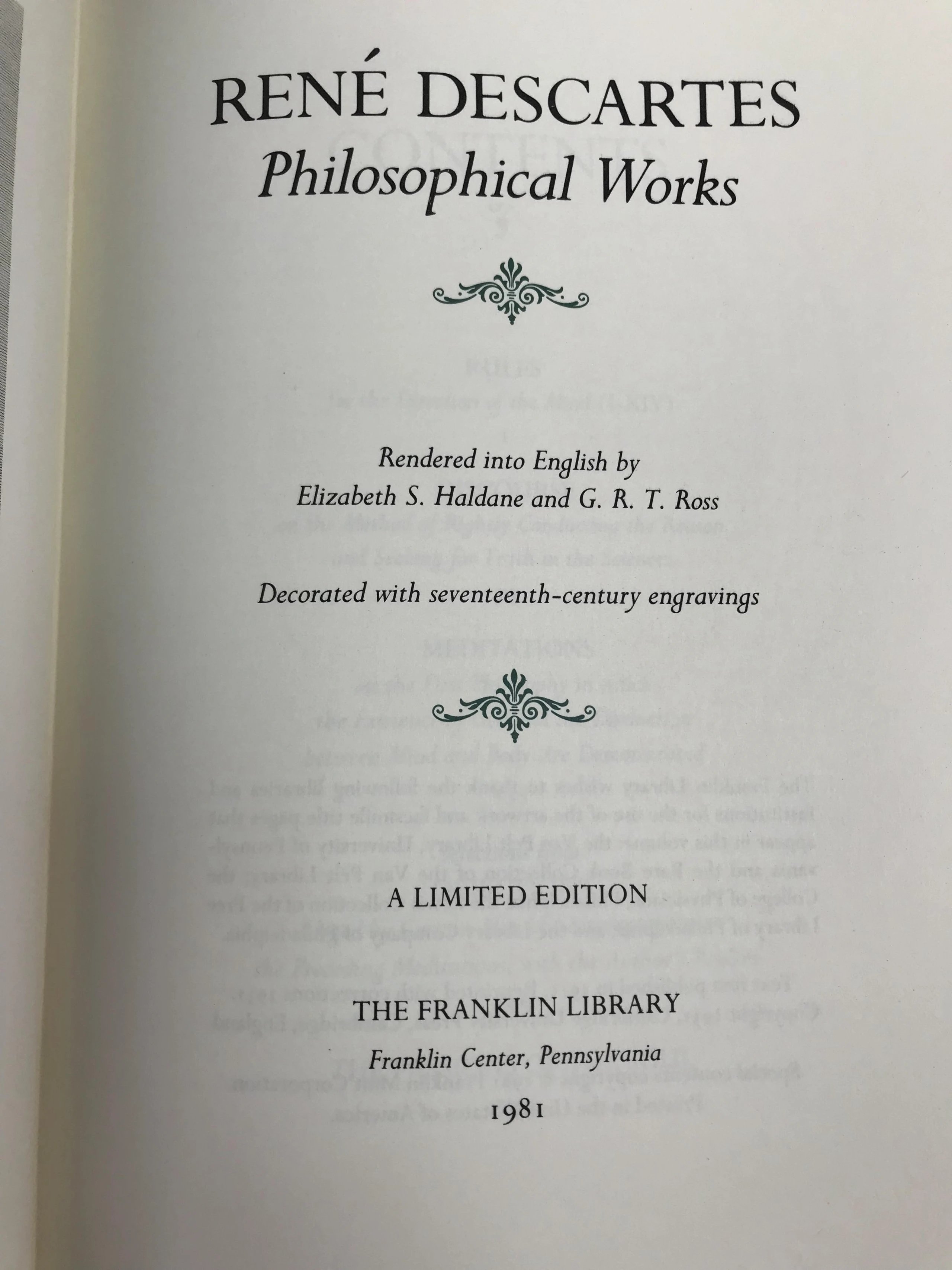 限量版!含藏书票 笛卡尔《笛卡尔哲学著作集》 配插图 富兰克林图书馆豪华皮装本