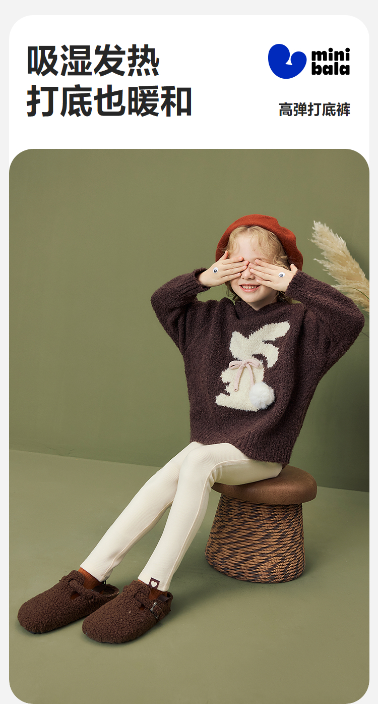 [吸湿发热]迷你巴拉女童双面绒保暖简约儿童打底裤2025冬新款